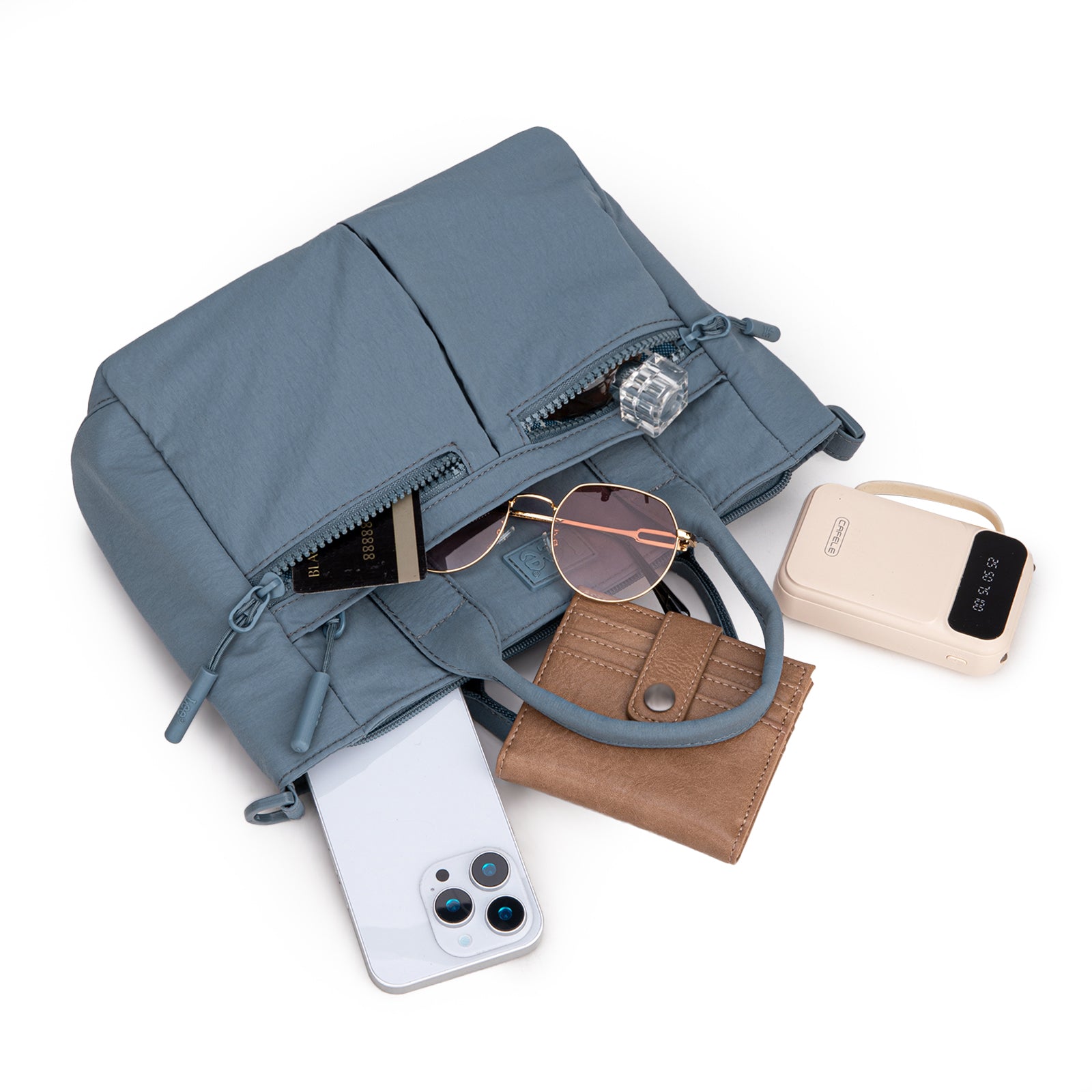 SKU:LEE65-001GNMulti-Functional Tote/Crossbody Bag combines style and practicality with multiple zippered pockets, ensuring your essentials are organized and accessible