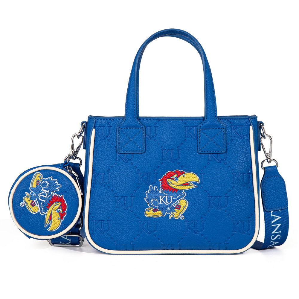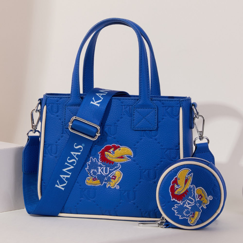 NC-KU014BL University of Kansas Jayhawks Embossed Tote Bag with Coin Pouch - Blue