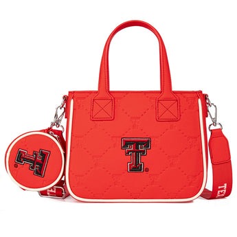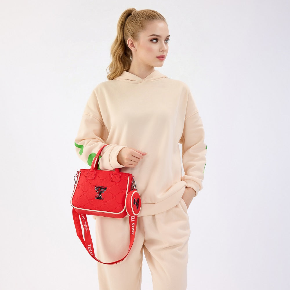 - Detachable and adjustable long shoulder strap printed with "TEXAS TECH" (Drop: 26.5")