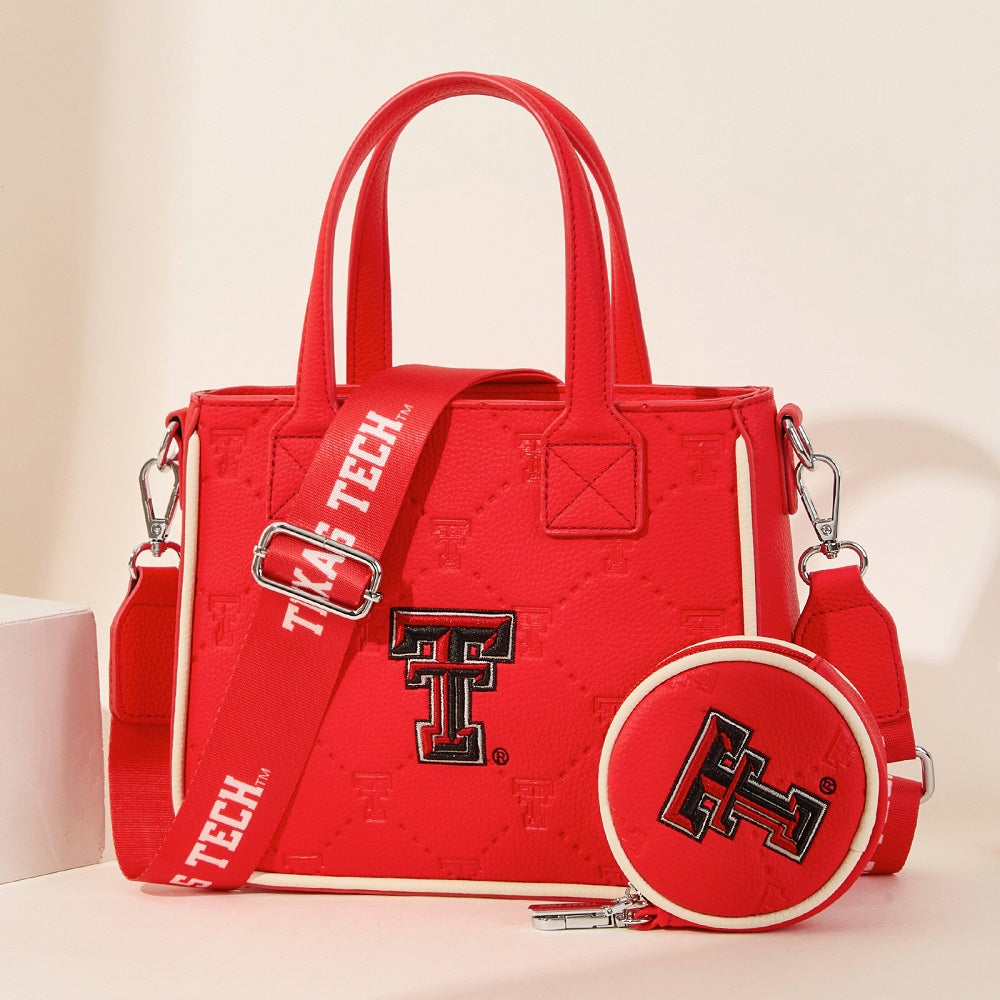 NC-TTU014RD Texas Tech University Red Raiders Embossed Tote Bag with Coin Pouch - Red