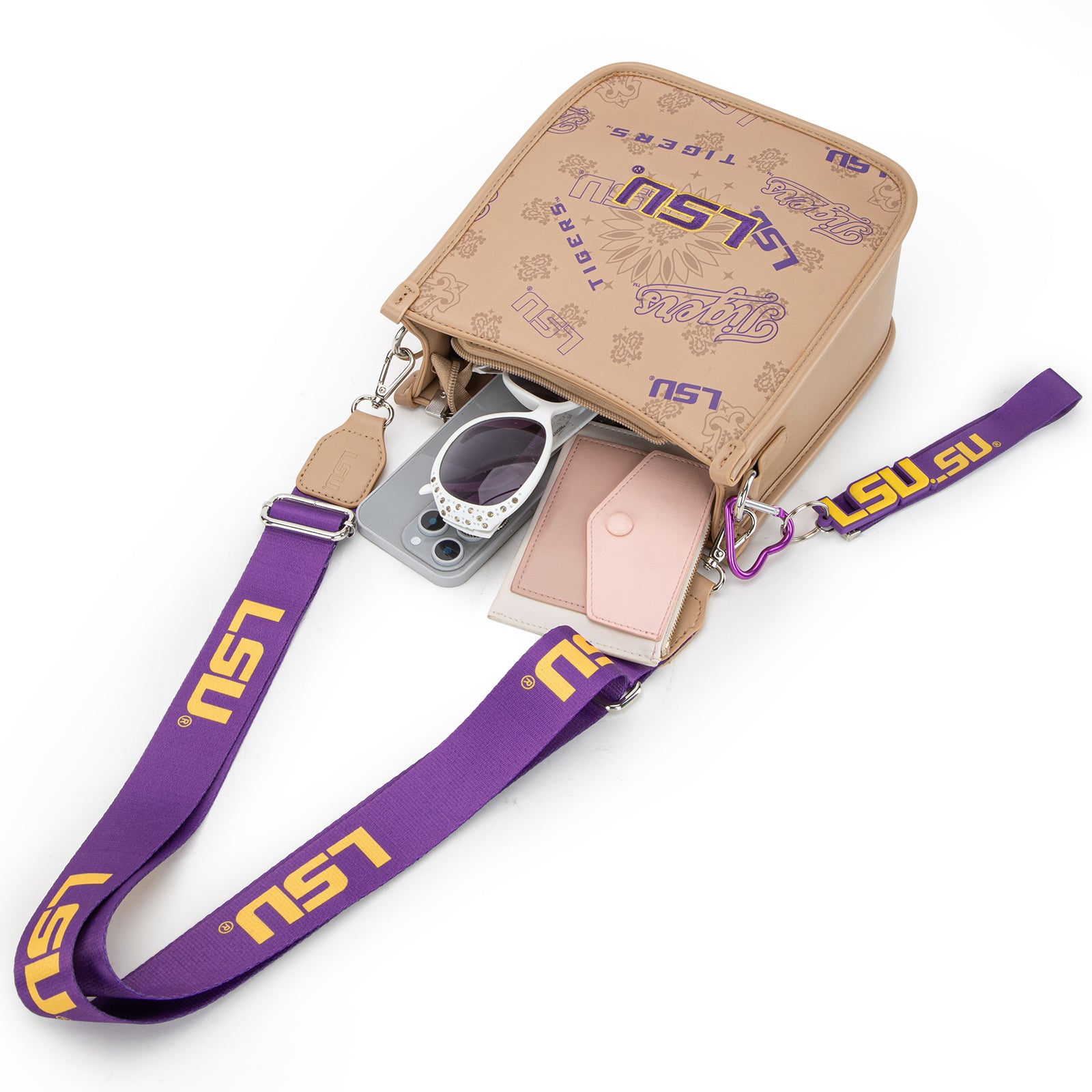 NC-LSU006KH Louisiana State University Fighting Tigers Crossbody Bag -Khaki