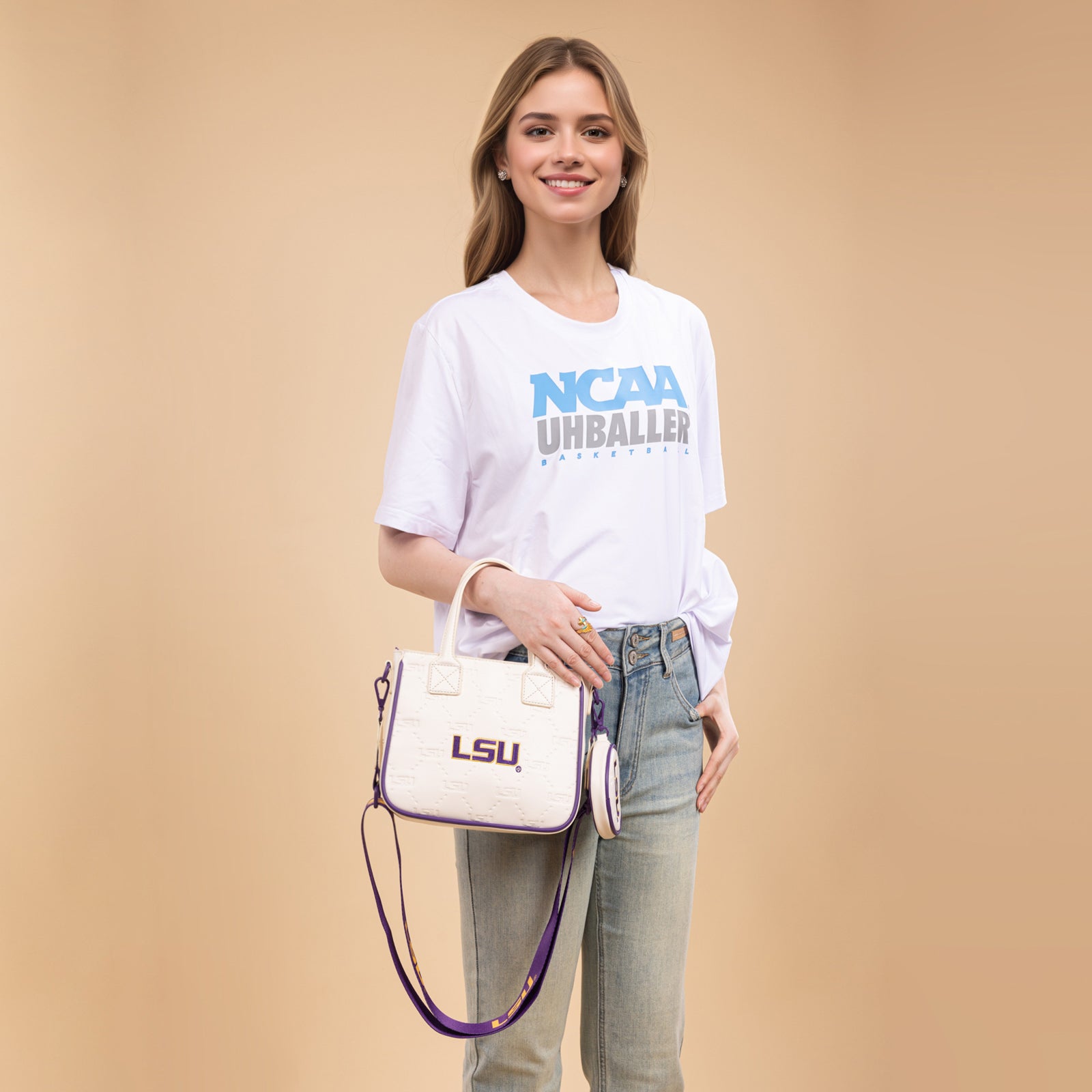 NC-LSU014BG Louisiana State University Fighting Tigers Tote/Crossbody Bag - Beige