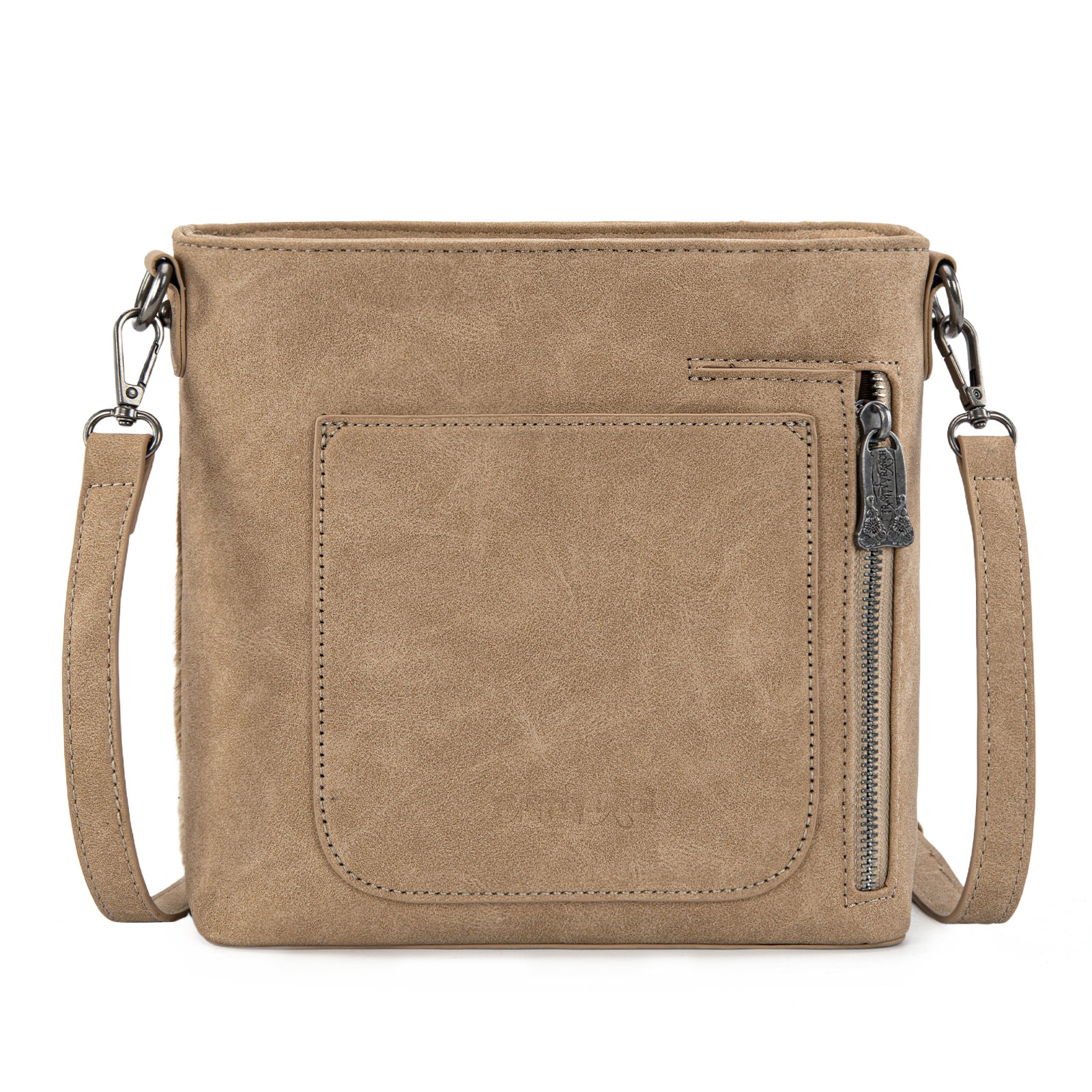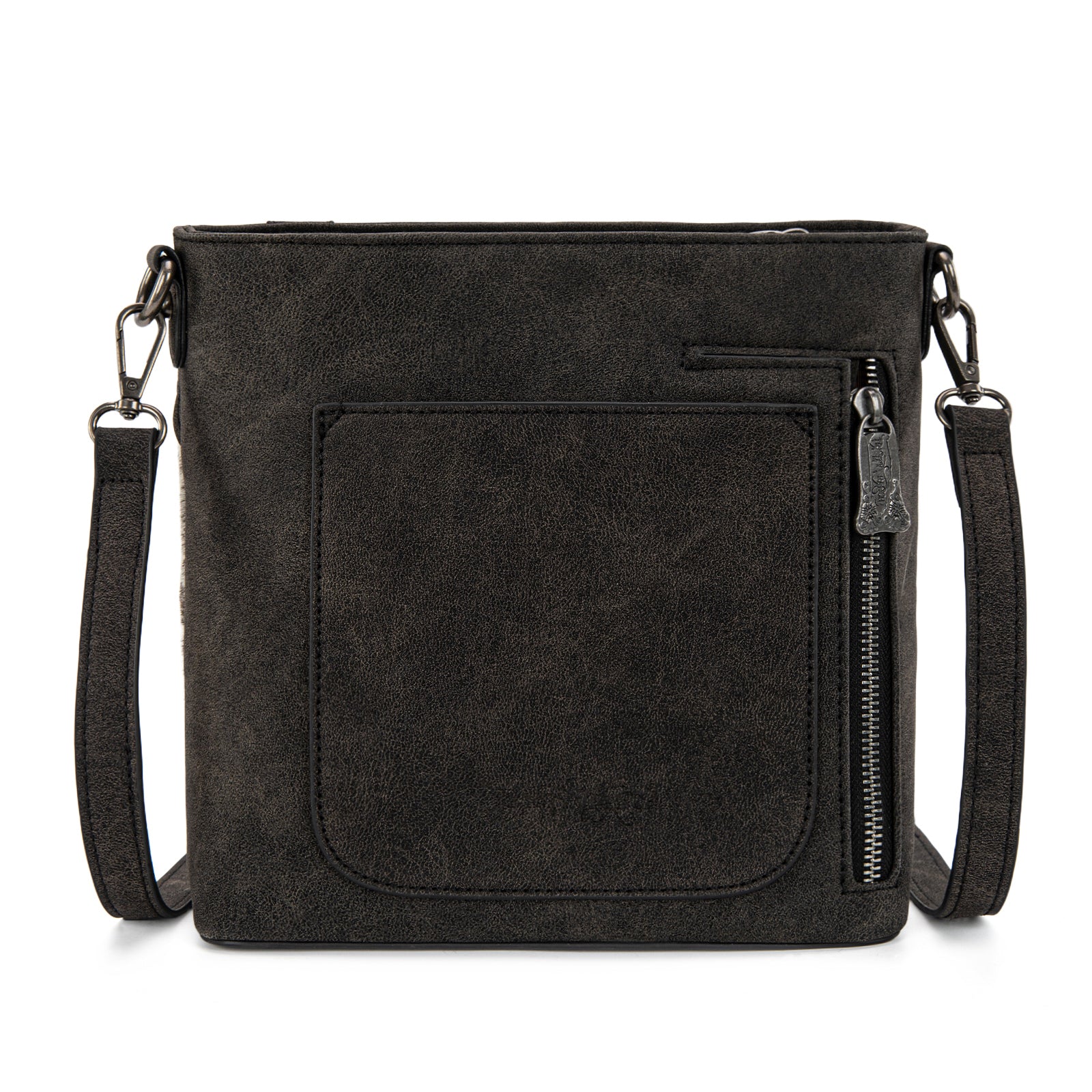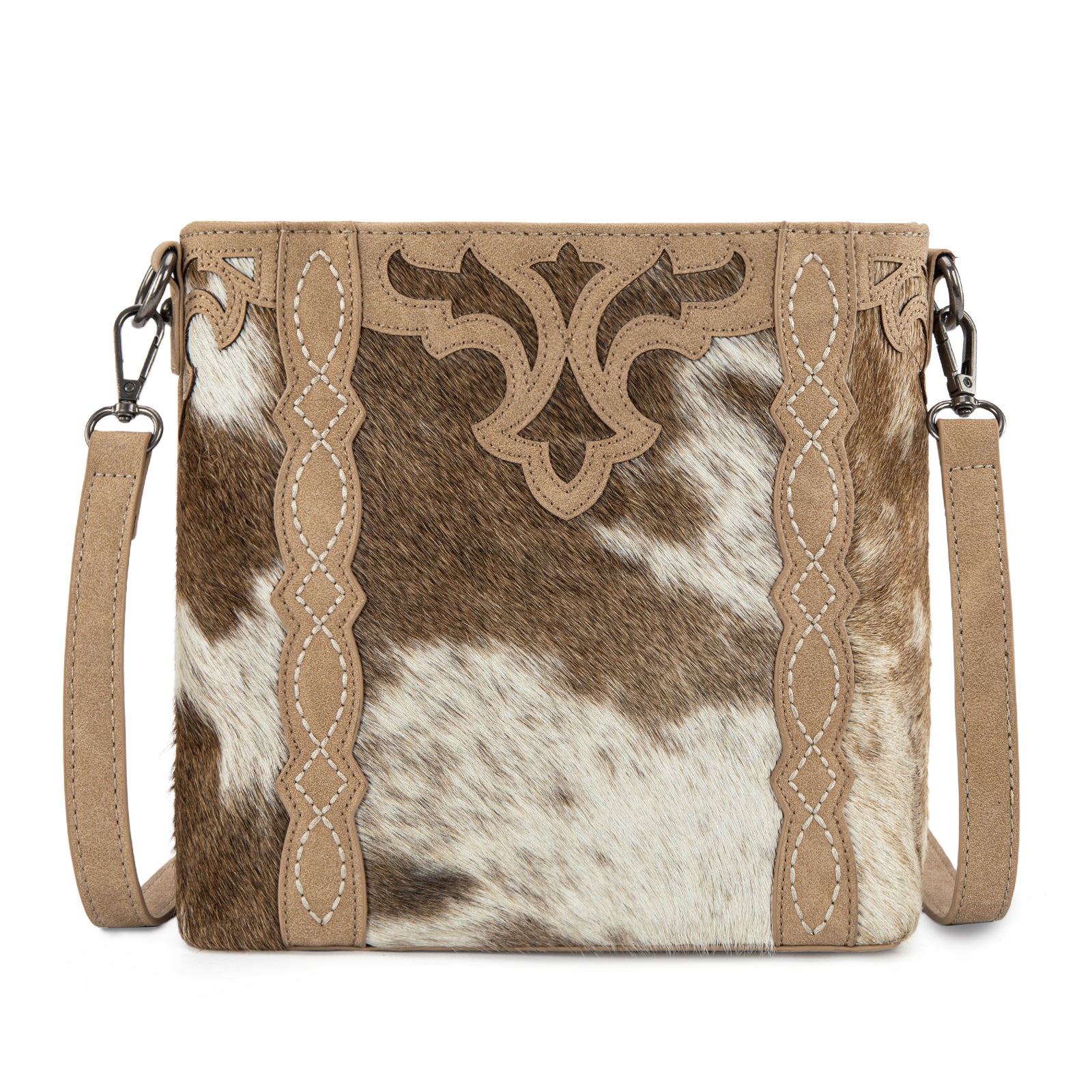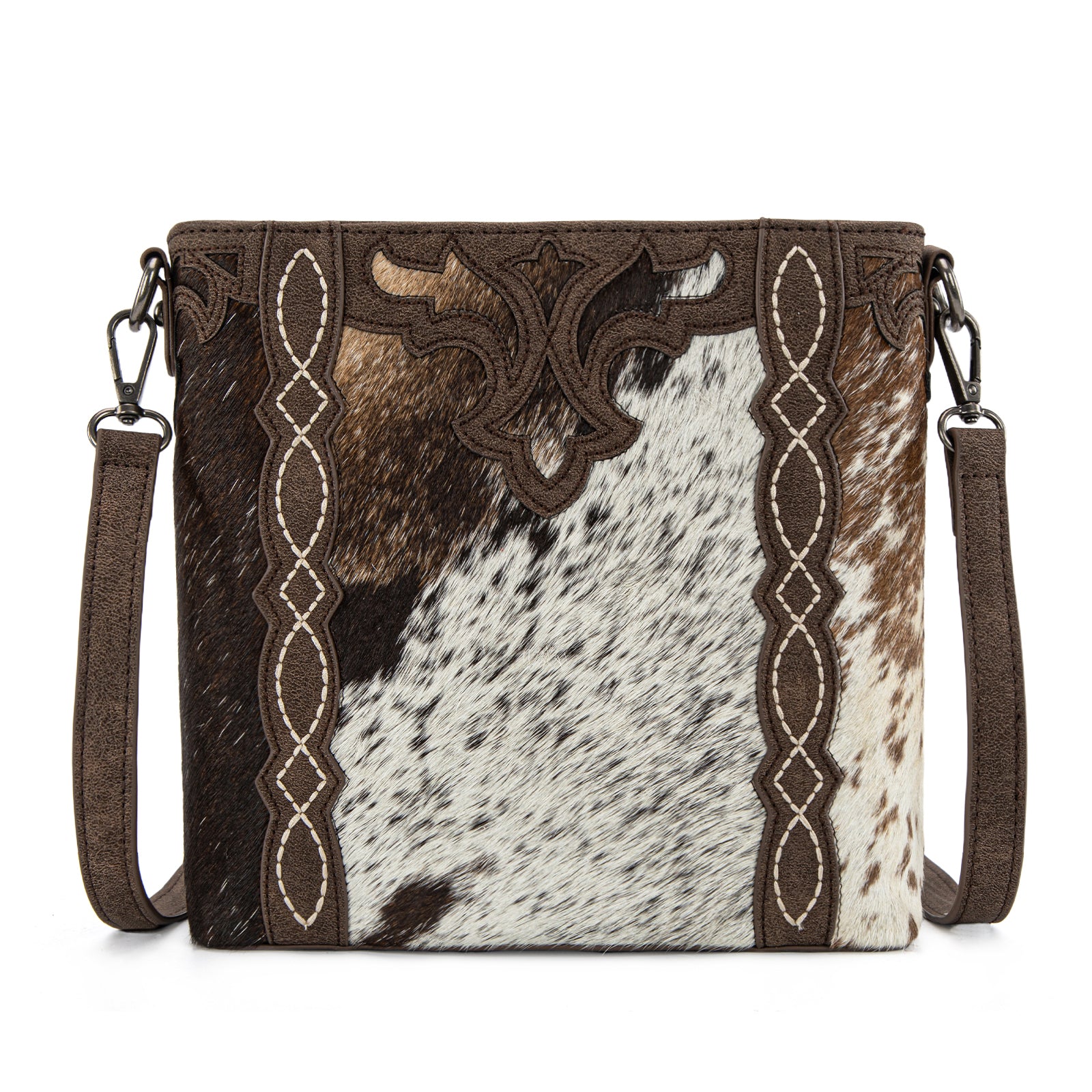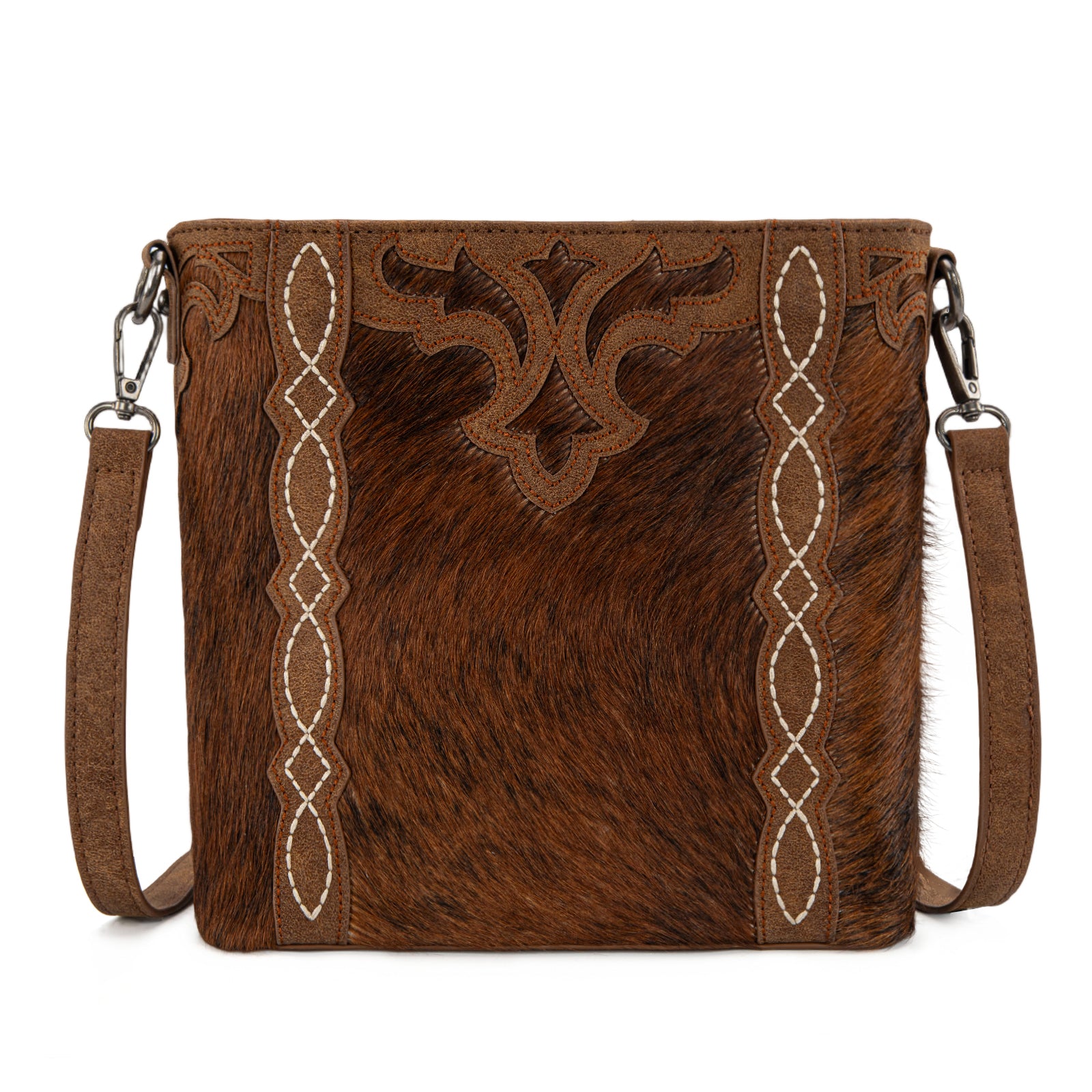 • Genuine hair-on cowhide front panel