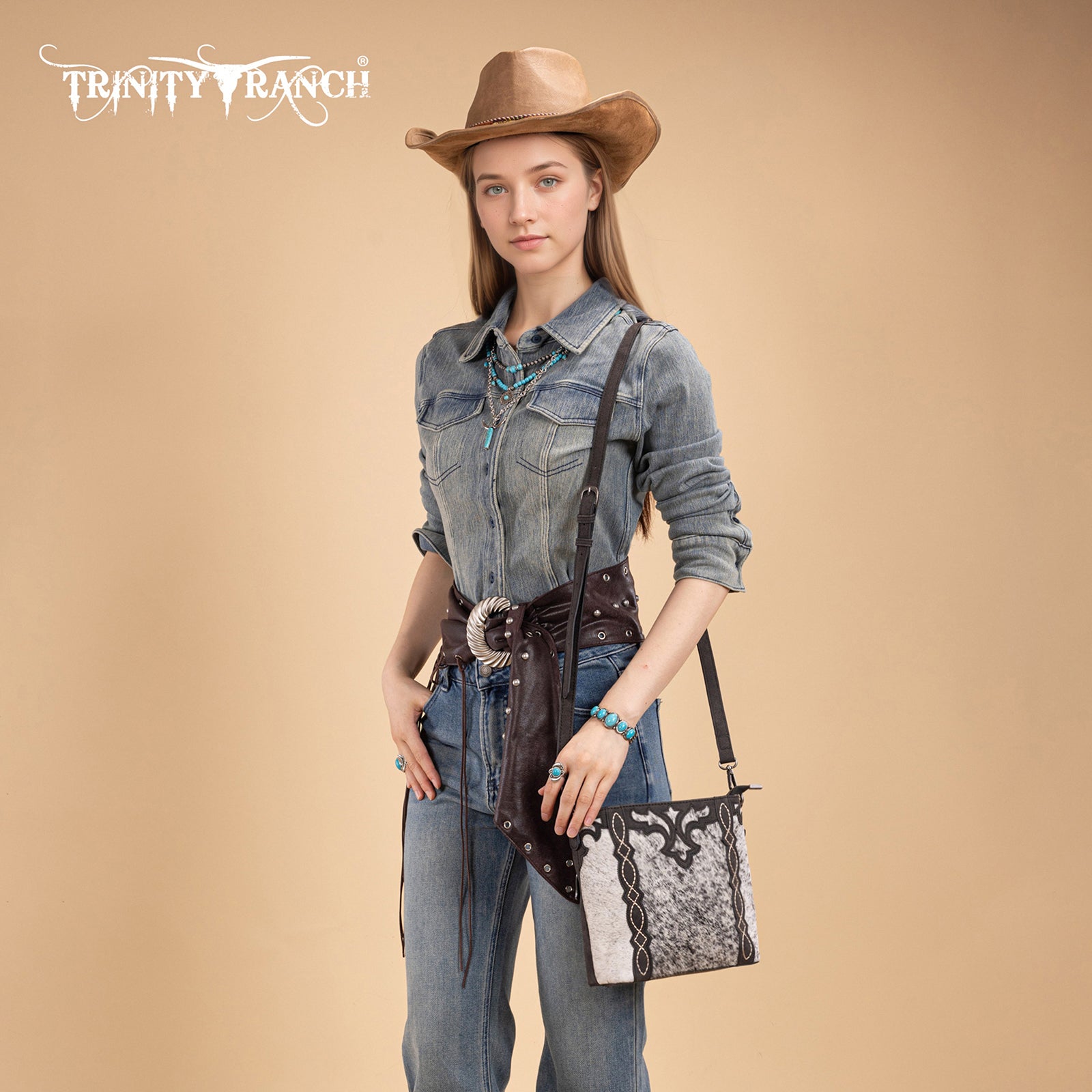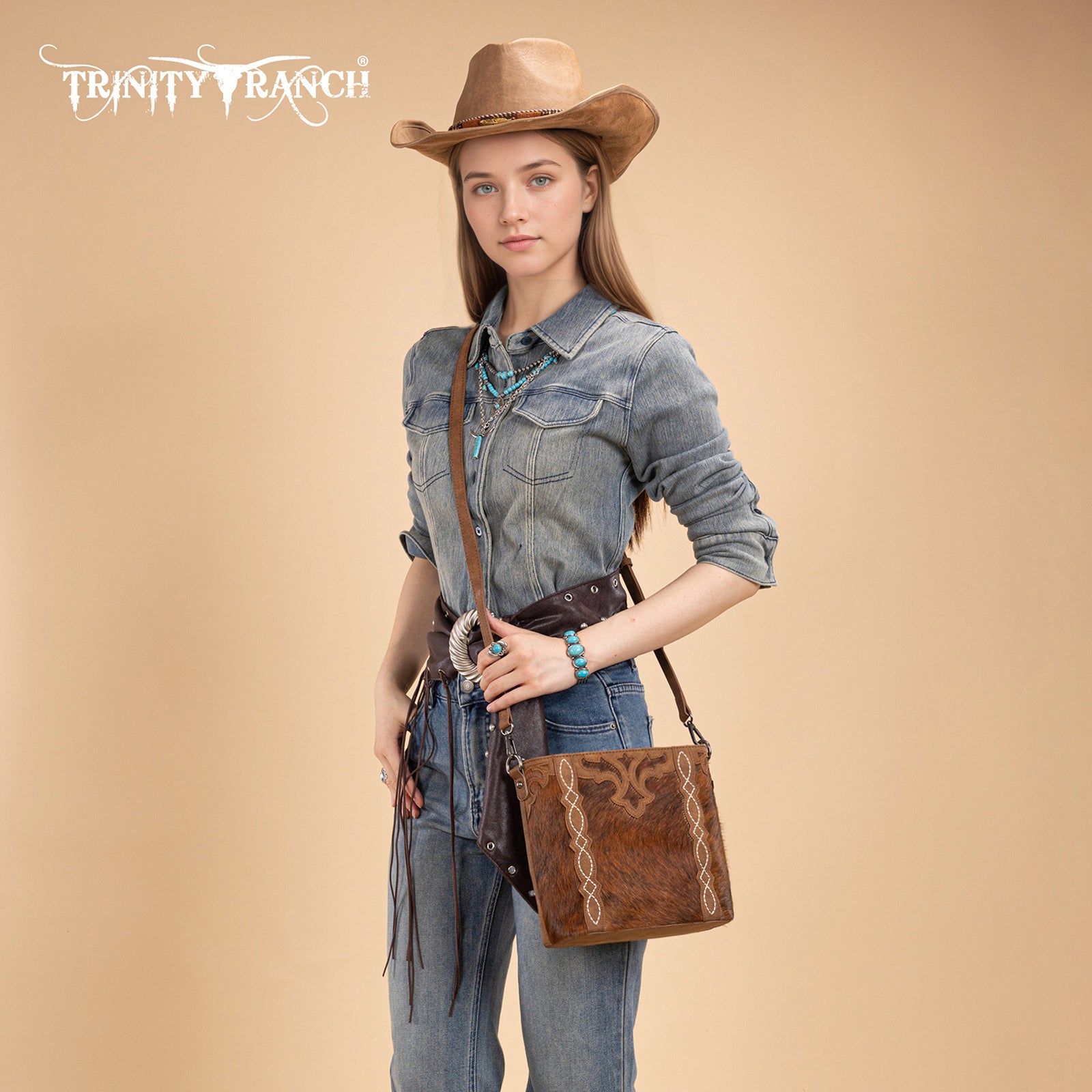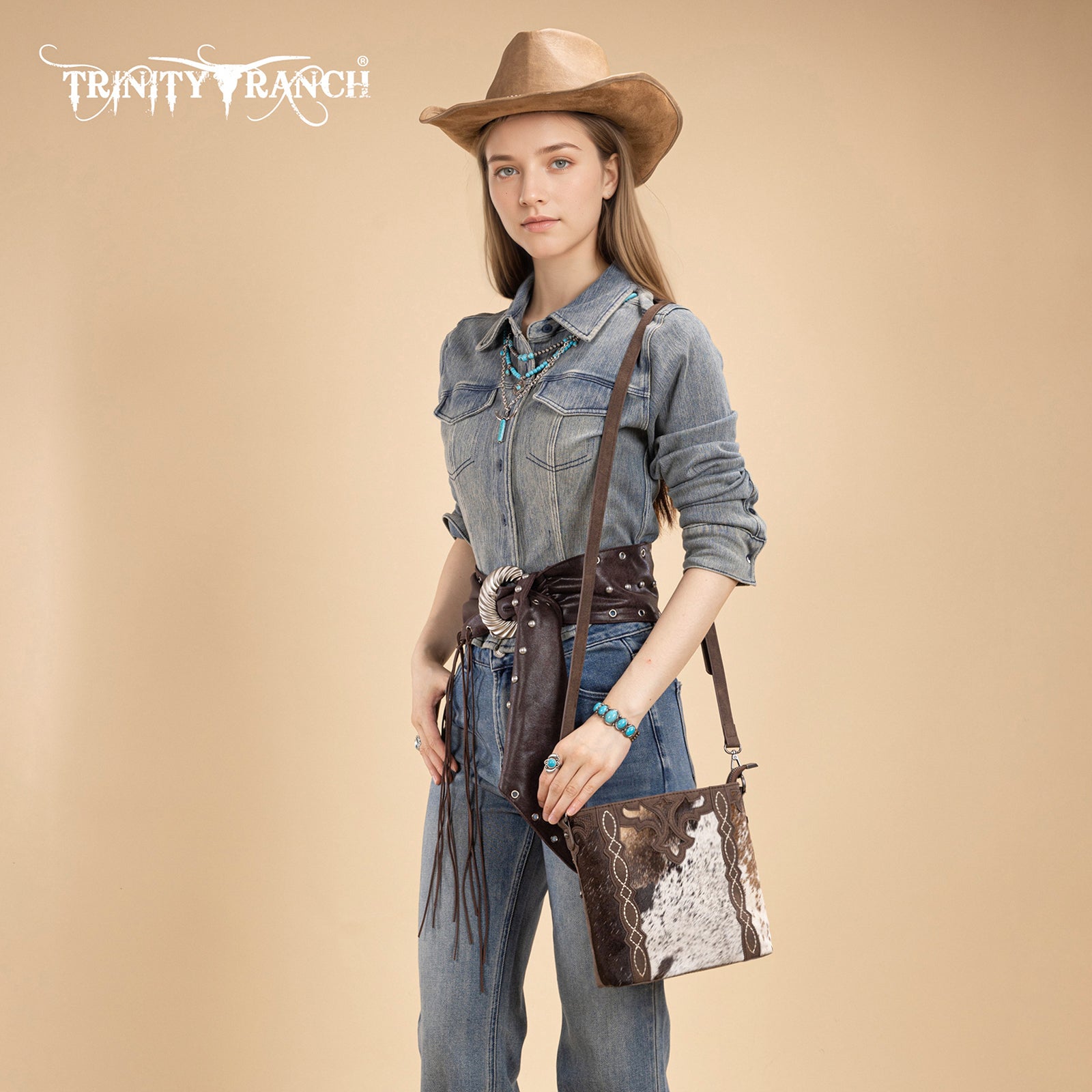 TR198G-9360 Trinity Ranch Western Hair-On Cowhide Concealed Carry Crossbody