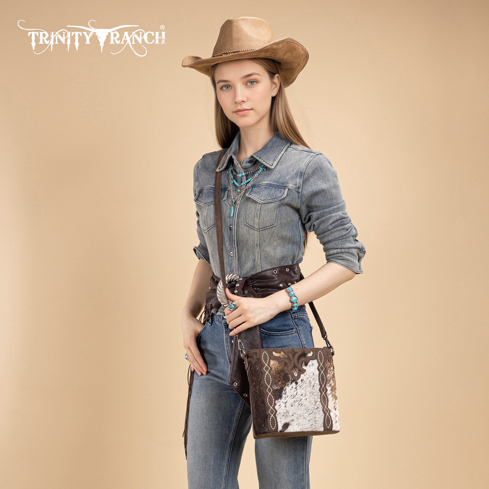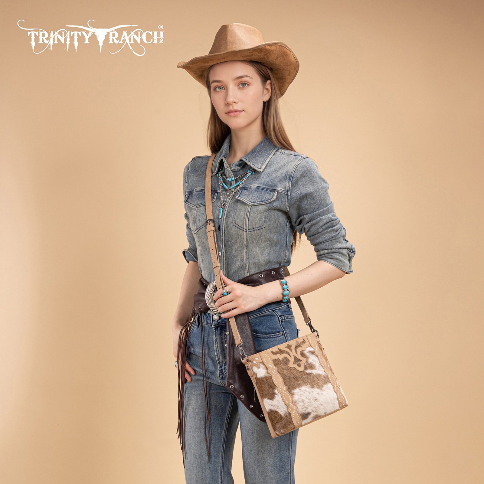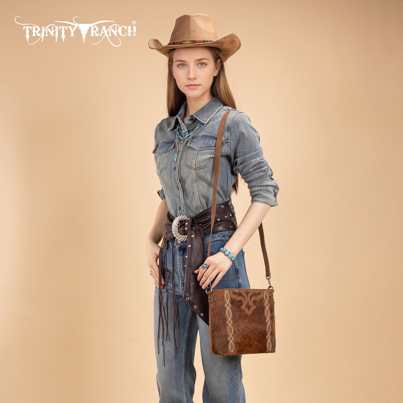 TR198G-9360 Trinity Ranch Western Hair-On Cowhide Concealed Carry Crossbody