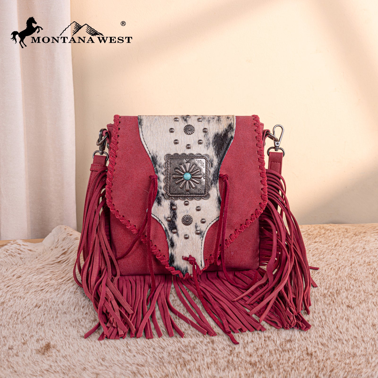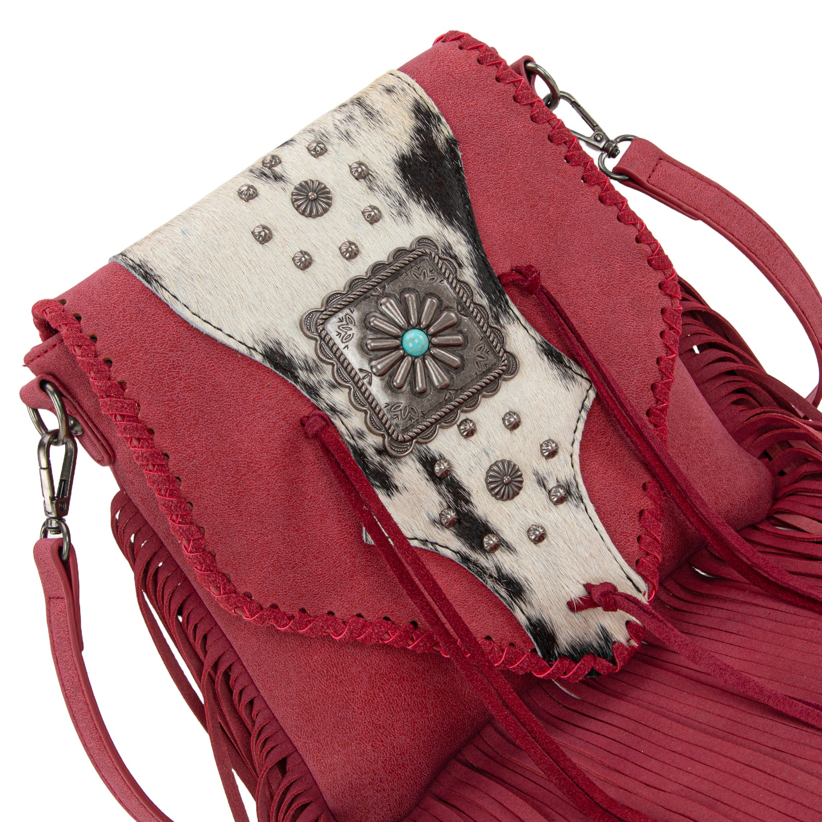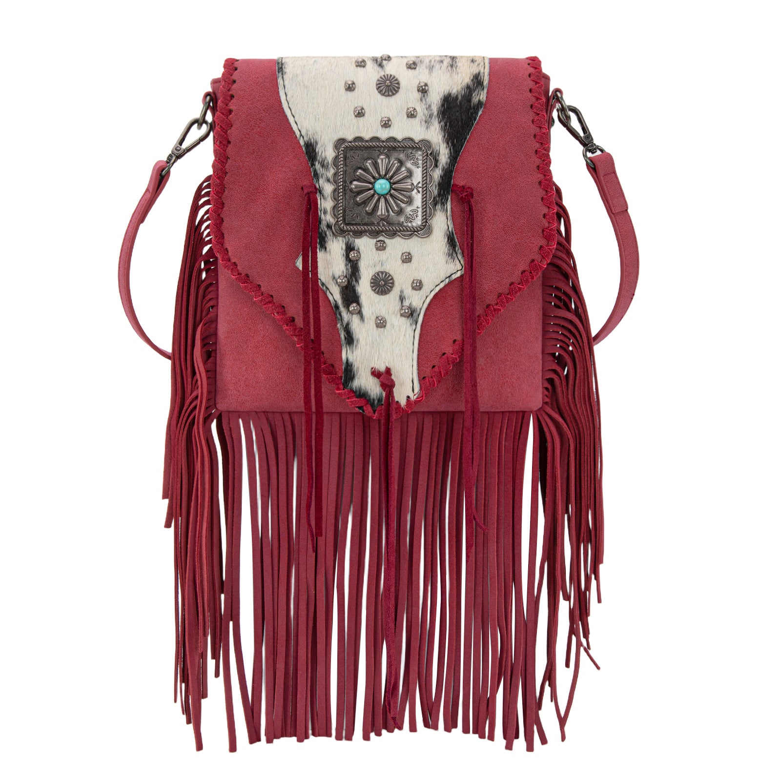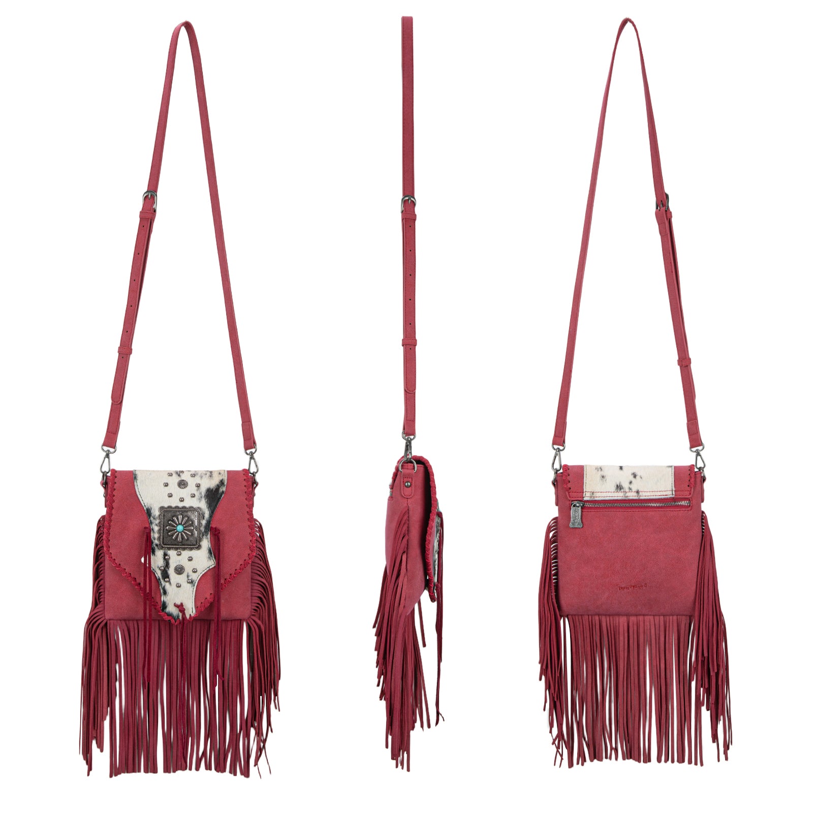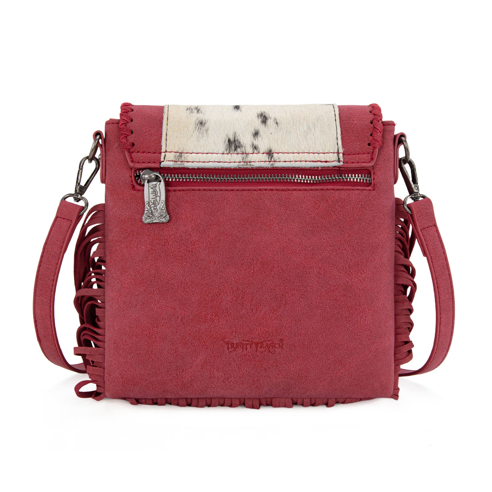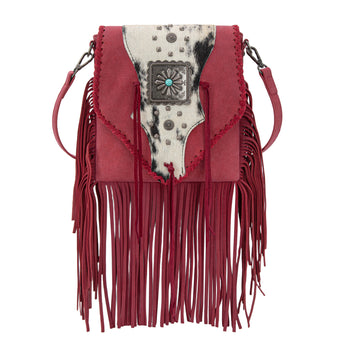 TR201-8360 Trinity Ranch Fringe Hair-On Cowhide Crossbody - Red