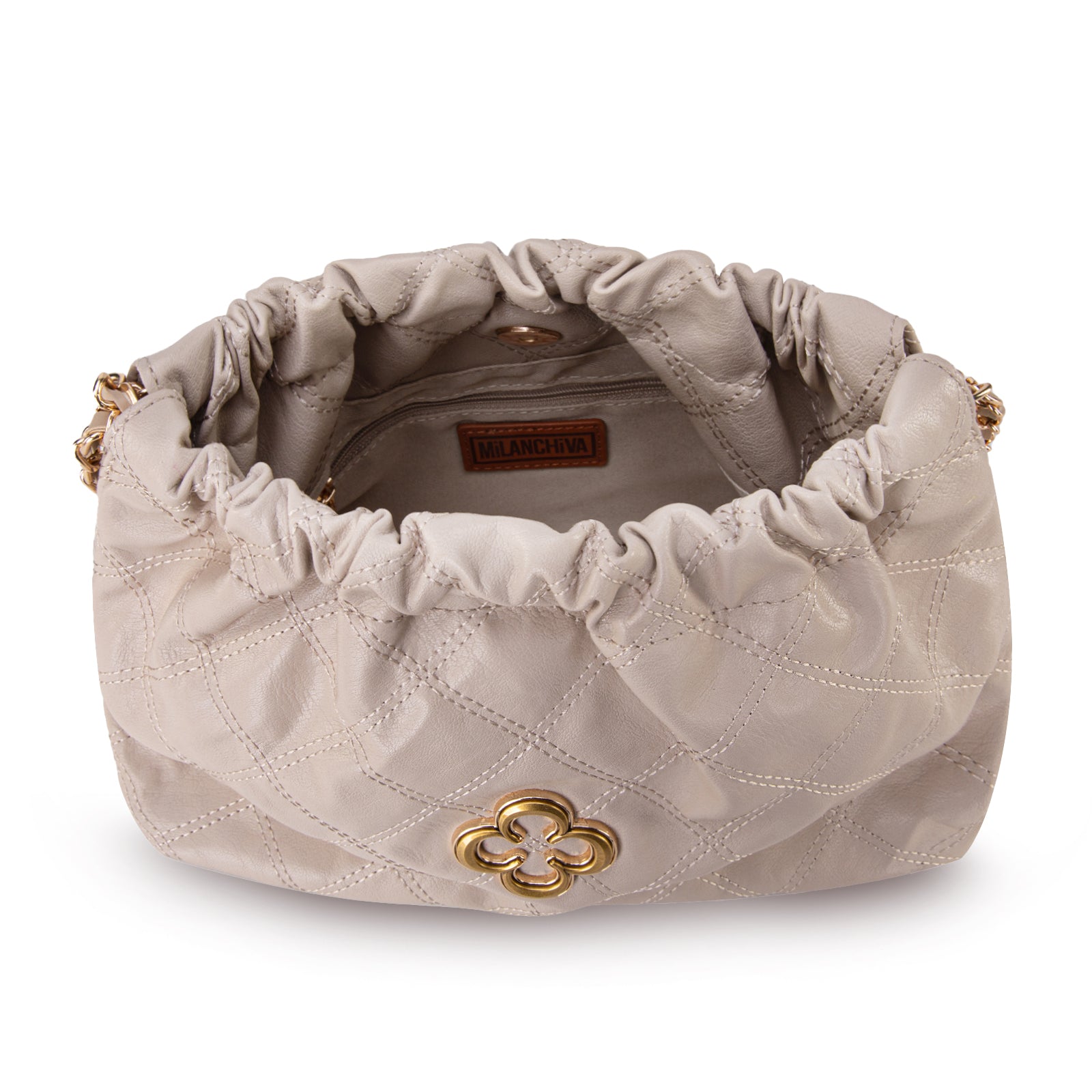 MC-411 Milan Chiva Quilted Chain Strap Shoulder Bag - Beige