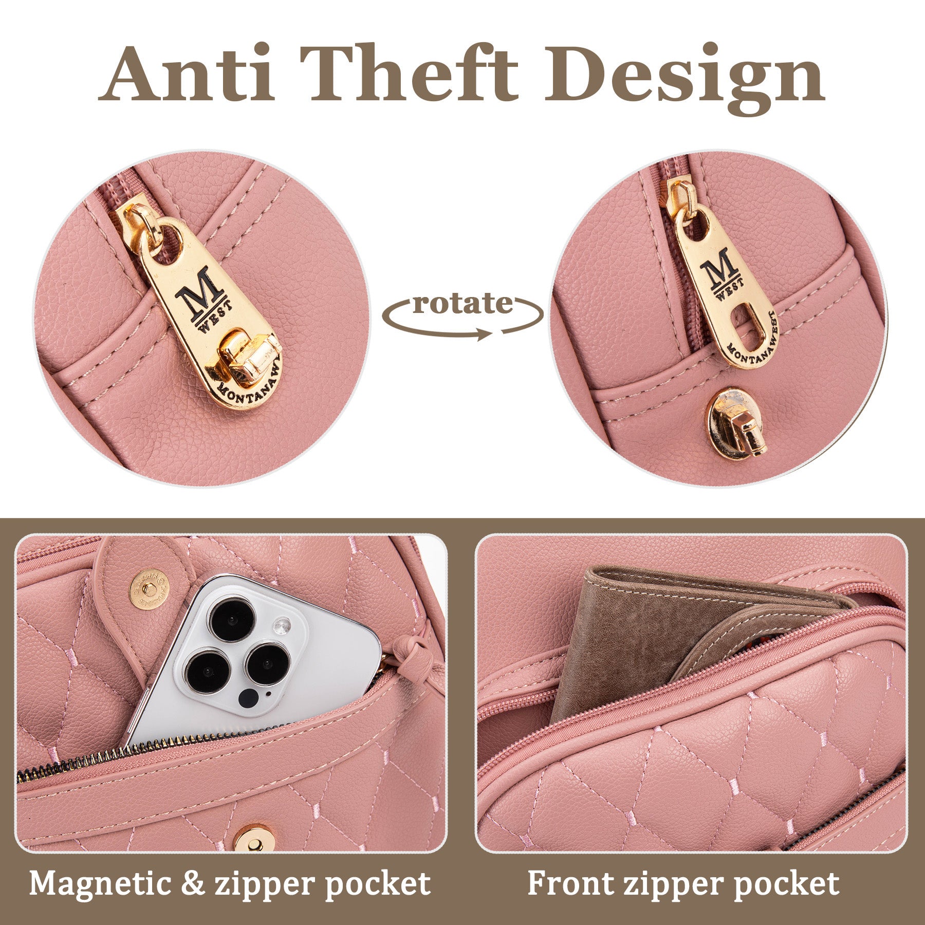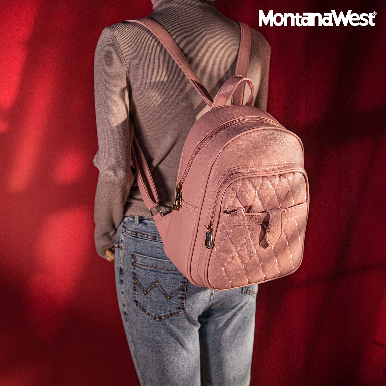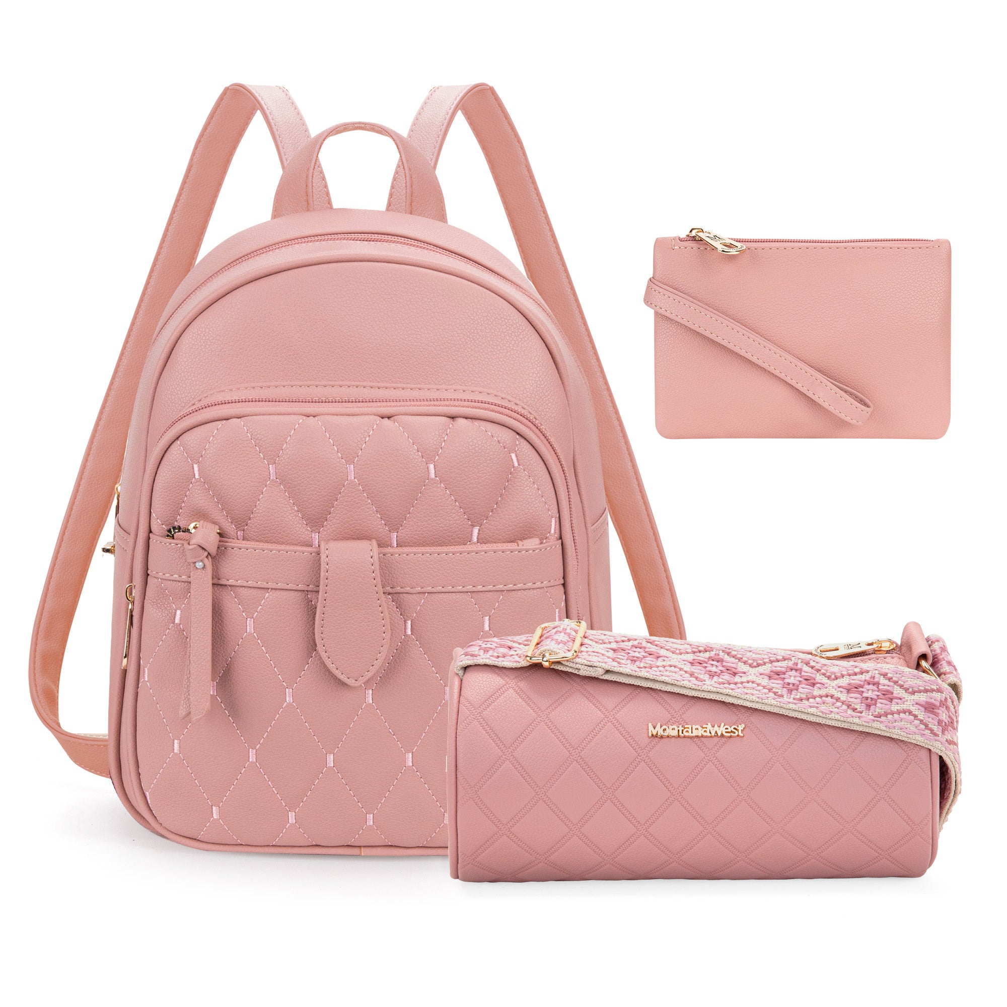MWC3-178 Montana West 3Pcs Set Quilted Small Backpack/Crossbody/Pouch - Pink