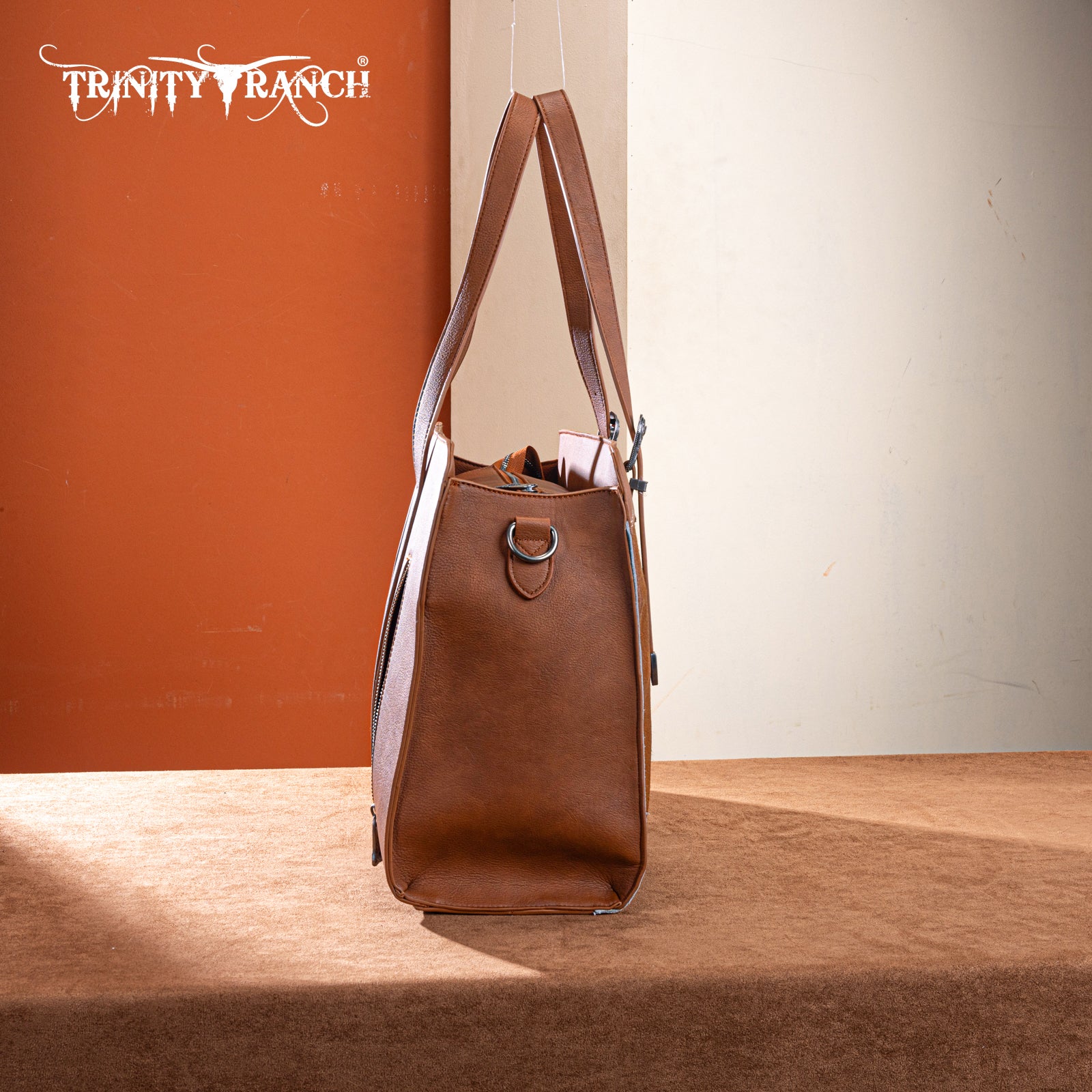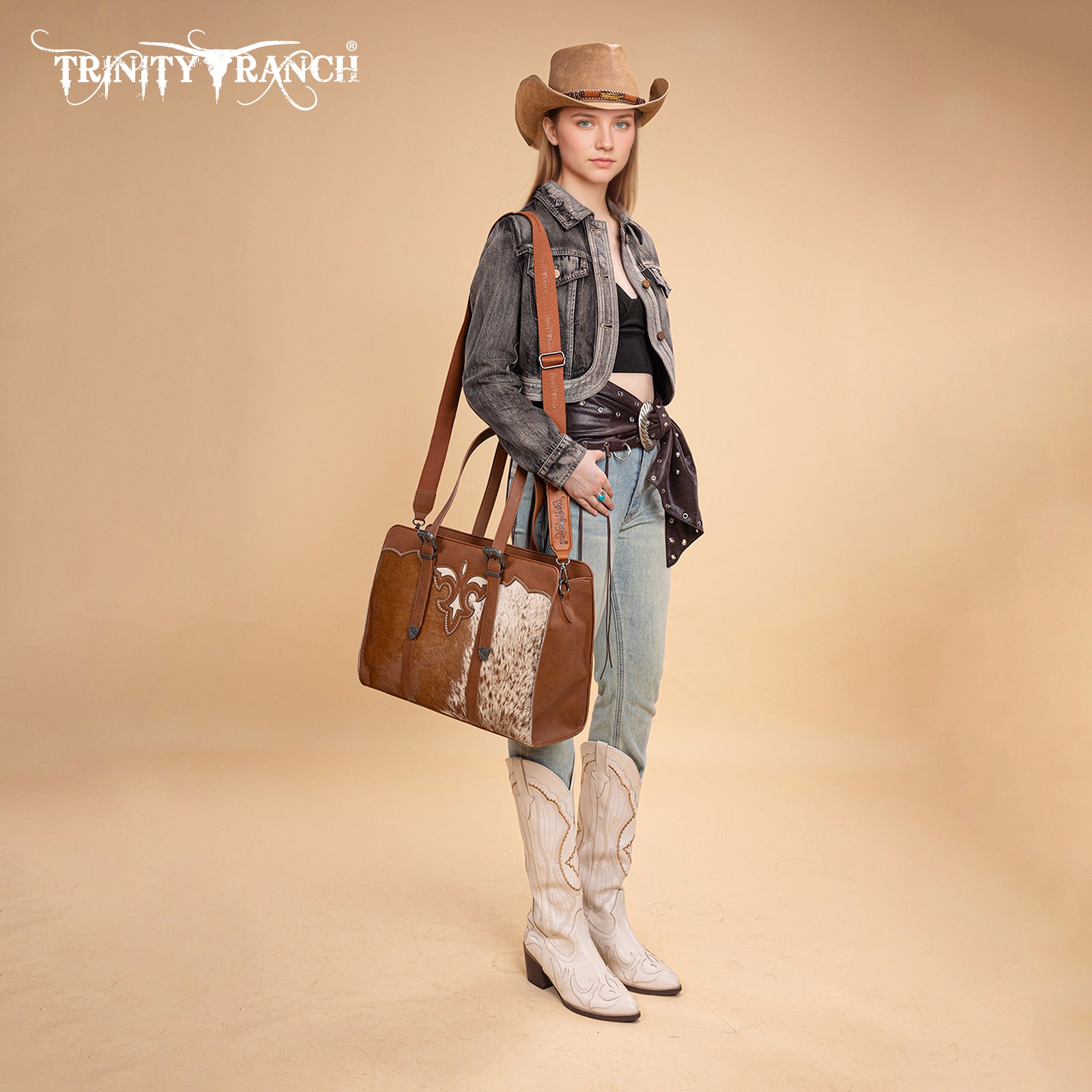 TR202G-8355 Trinity Ranch Genuine Cowhide Carry-All Cowhide Concealed Carry Large Tote /Crossbody - Brown