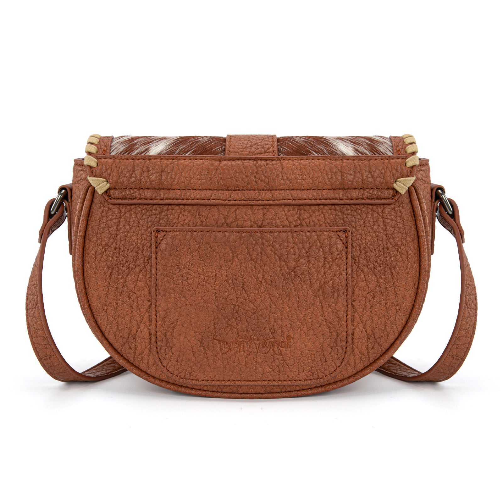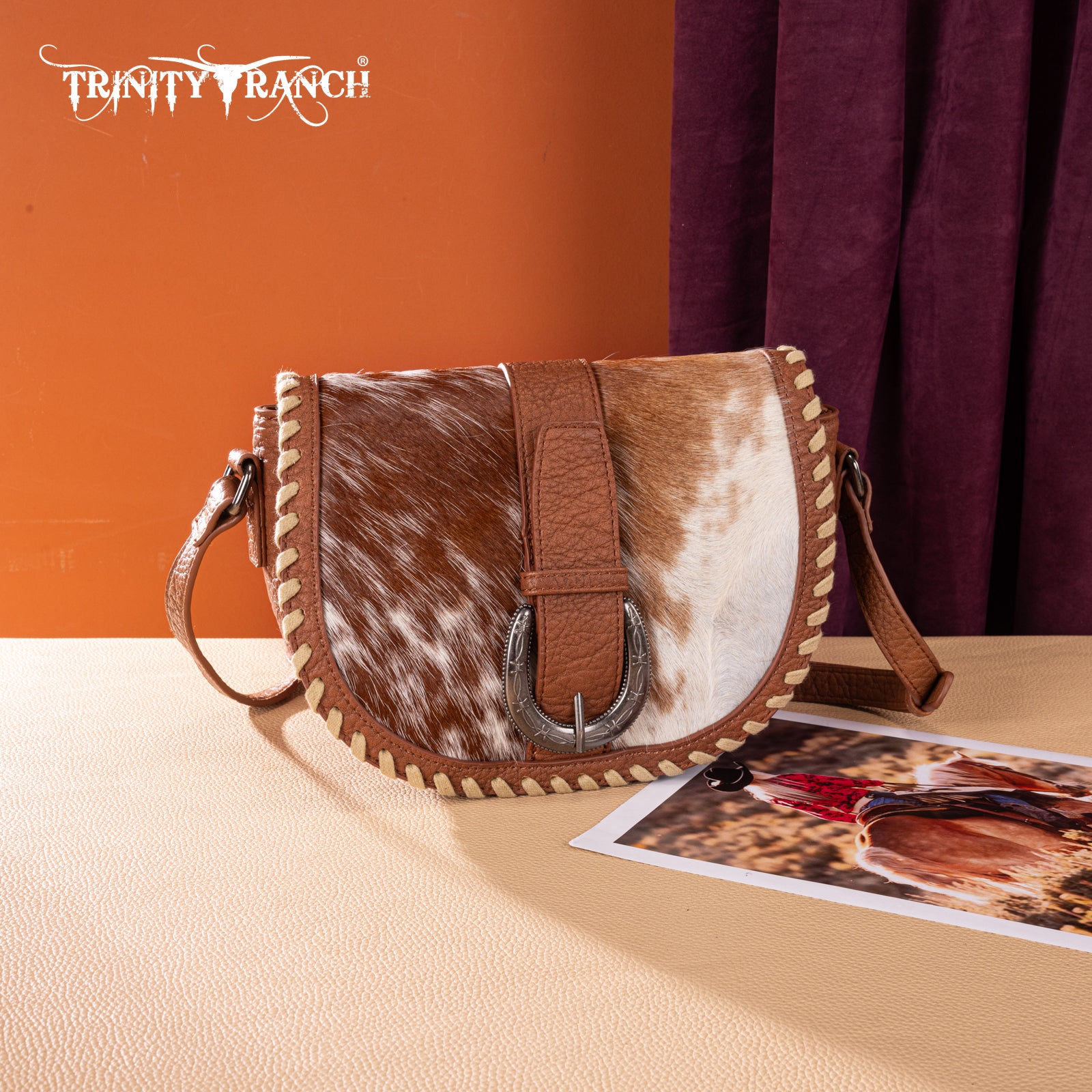 TR204-8360 Trinity Ranch Western Hair-On Cowhide Saddle Crossbody - Brown