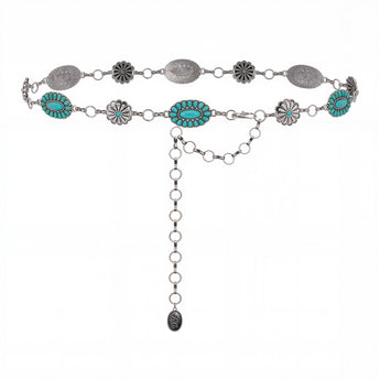 RCB-03-115TQ Rustic Couture Western Turquoise Bead Concho Link Chain Belt