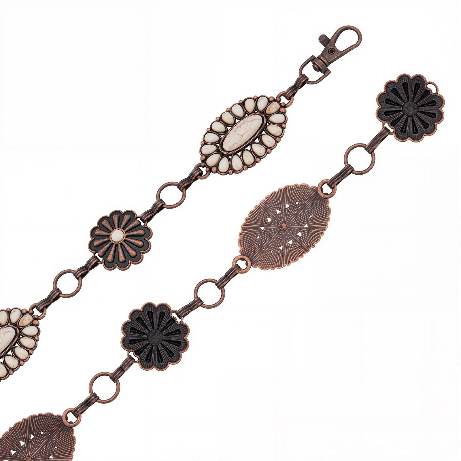 - Beaded stone concho and daisy concho