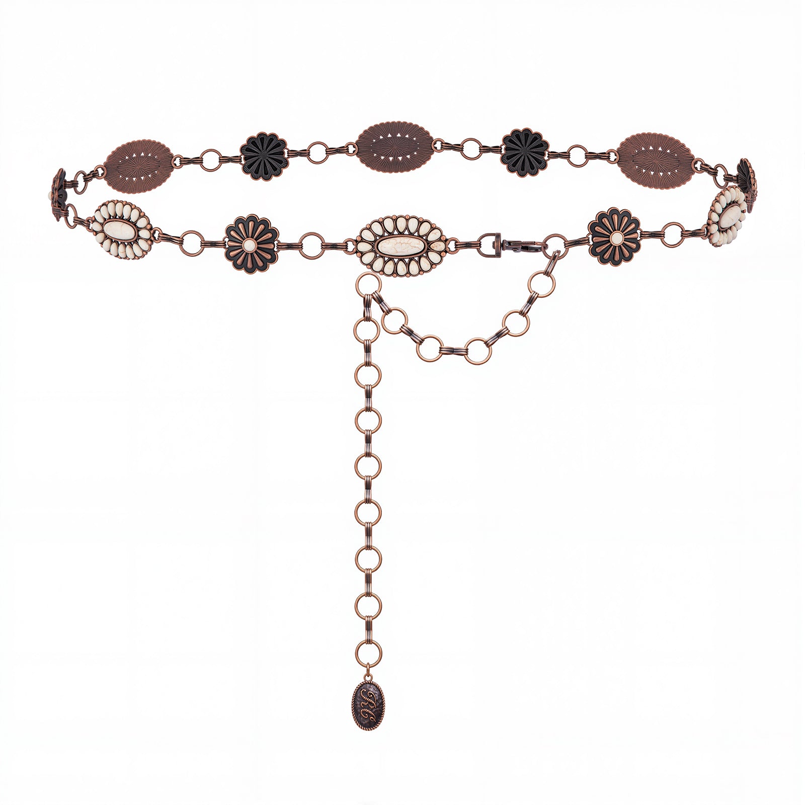 RCB-03-115WH Rustic Couture Western White Bead Concho Link Chain Belt