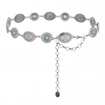 RCB-03-116 Rustic Couture Etched Oval Turquoise Stone Centered Concho Link Chain Belt