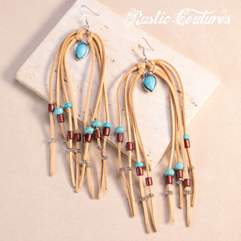 RCE-1120 Rustic Couture's Suede Beaded Tassels Hook Statement Earrings