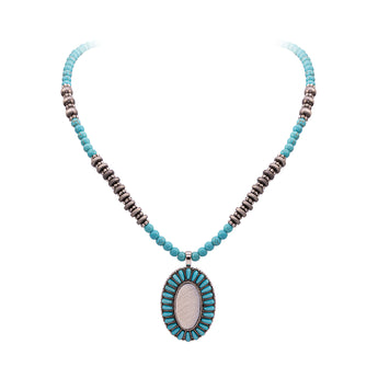 RNS-04-122 Rustic Couture's Beaded Necklace With Beaded Pendant