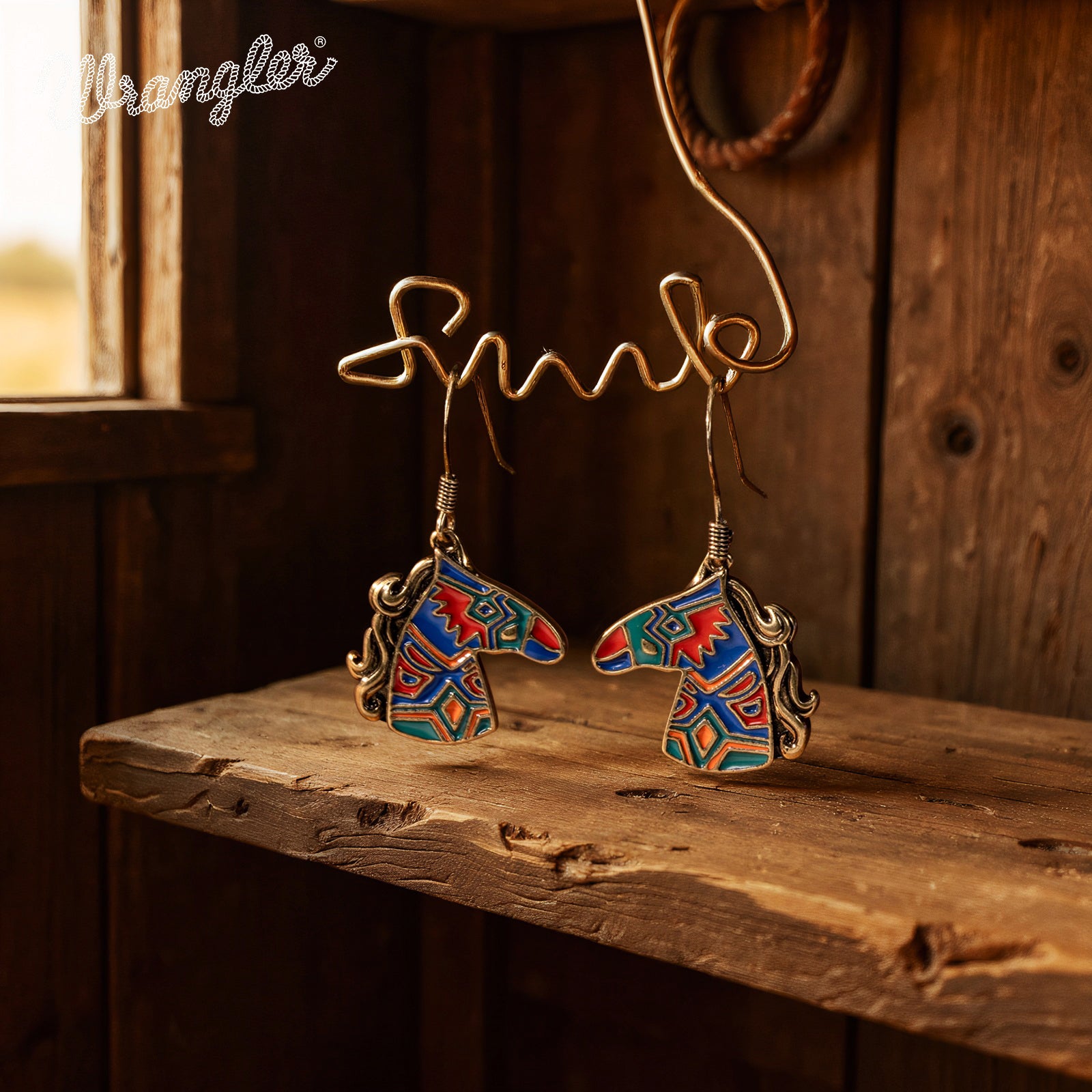 WGE-2001G Wrangler Horse Head Drop Earrings - Multi
