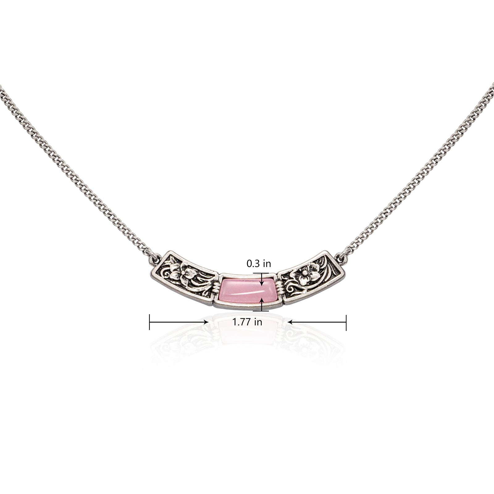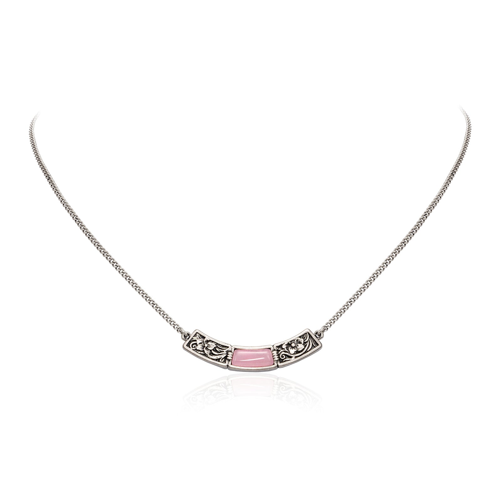 WNS-STL-1119SPK Wrangler Natural Stone Silver Engraved Necklace Pink