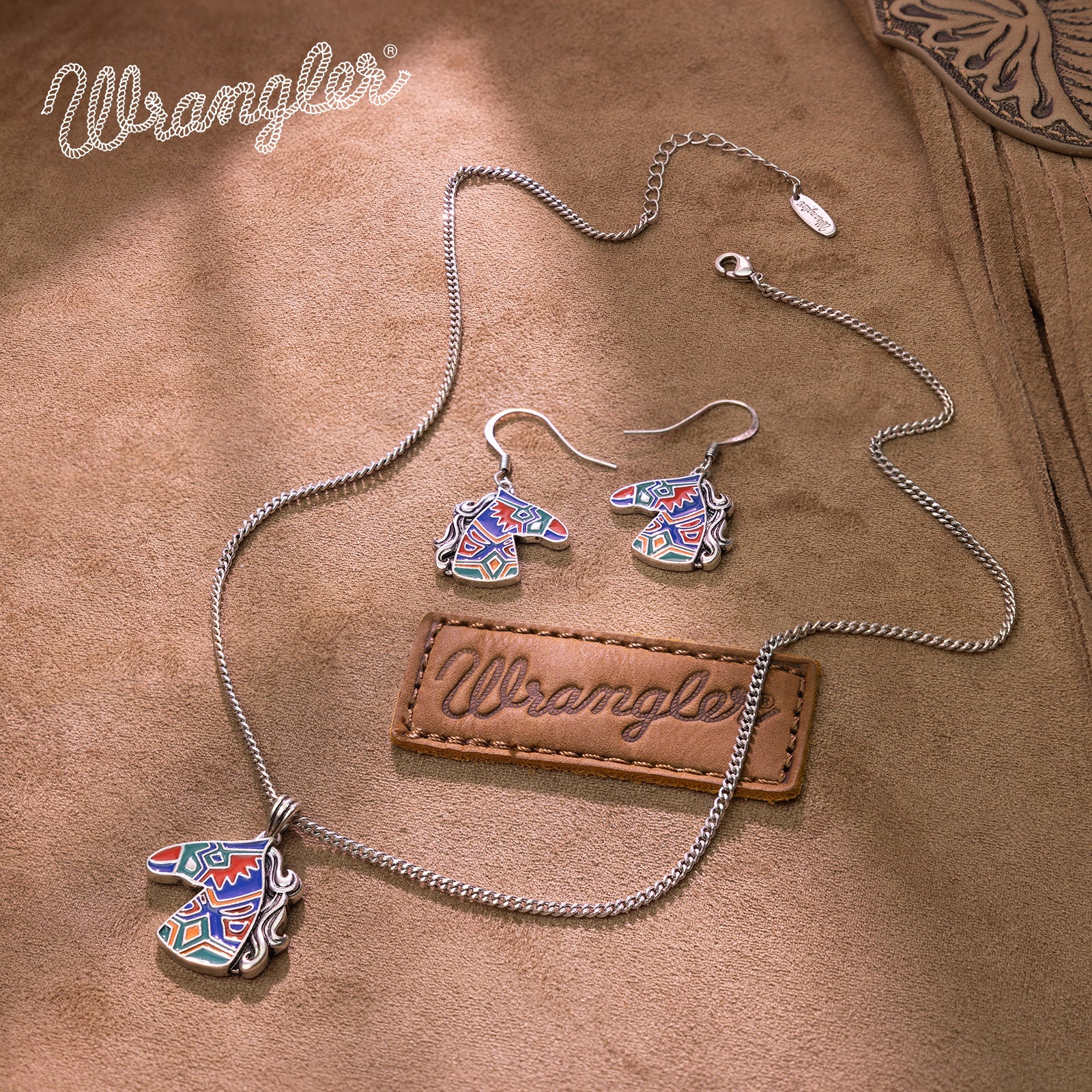 WNS2-2001S Wrangler Jewelry Horse Head Pendant Necklace Earrings Set -Silver