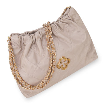 MC-411 Milan Chiva Quilted Chain Strap Shoulder Bag - Beige