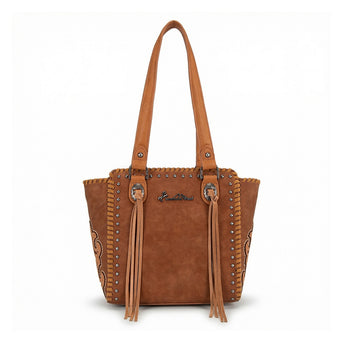 MW1373-8317BR Montana West Western Tassel Studded Tote Bag - Brown