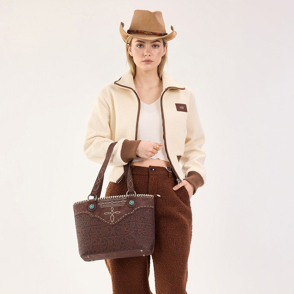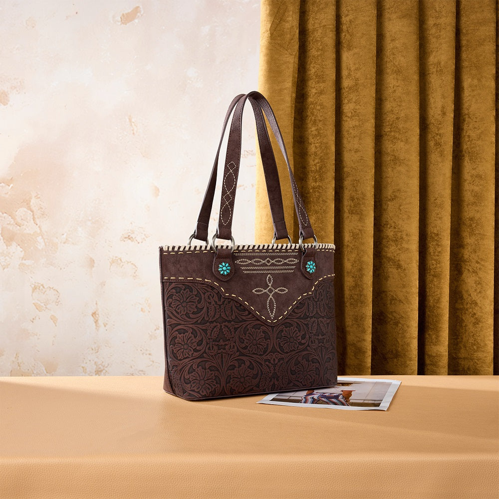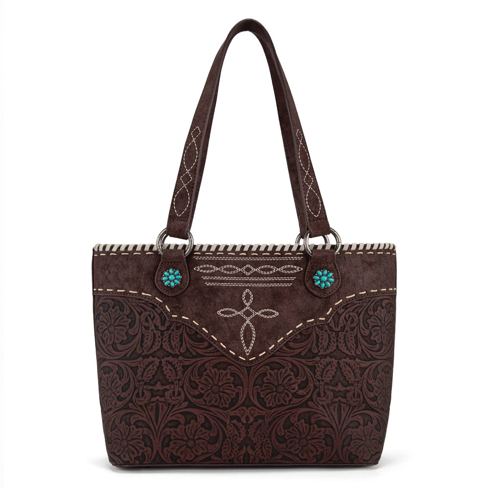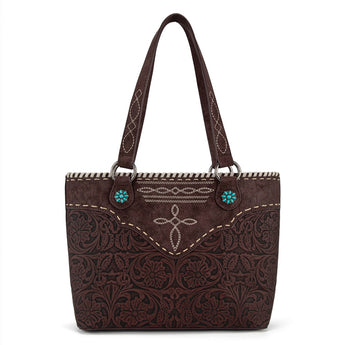 MW1375G-8317CF Montana West Tooled Floral Concealed Carry Tote Bag - Coffee