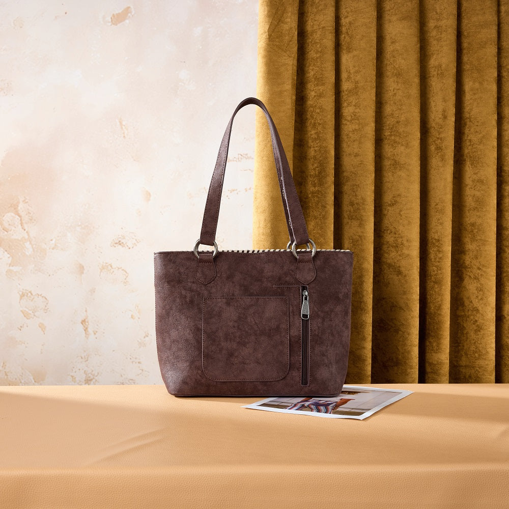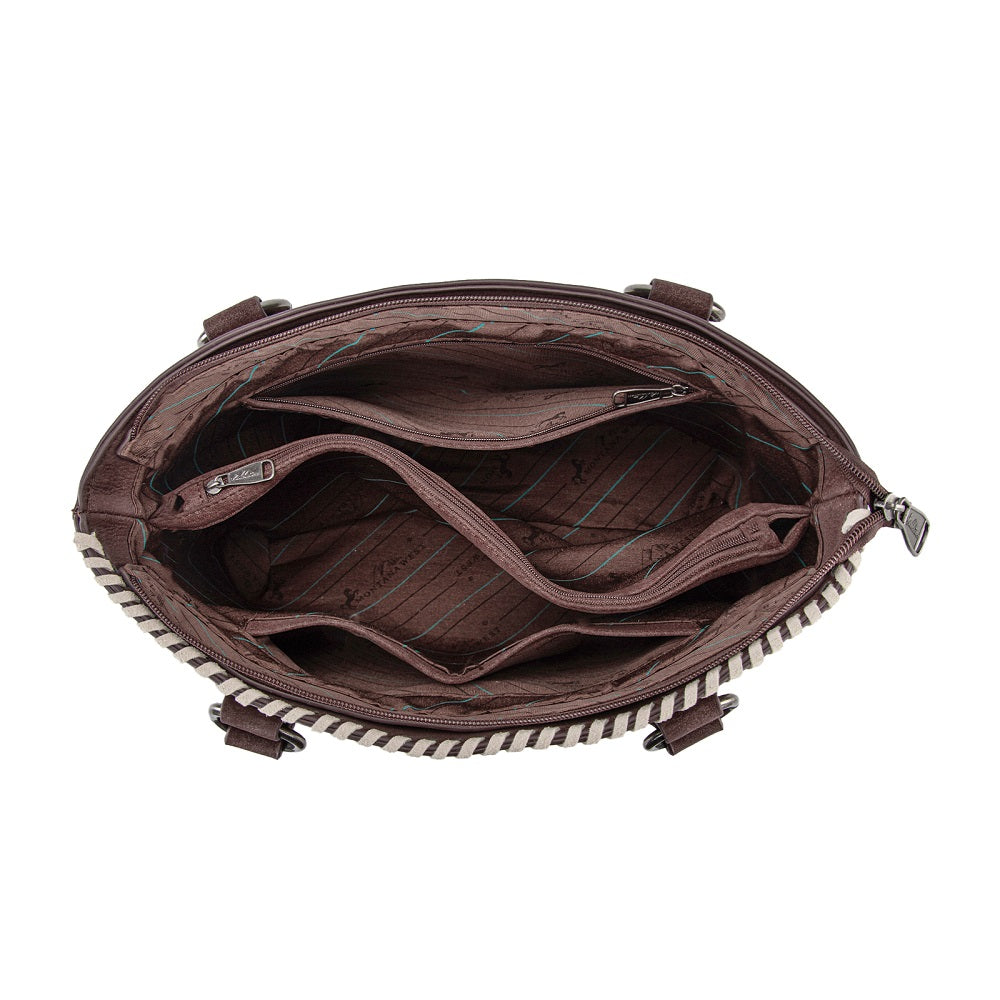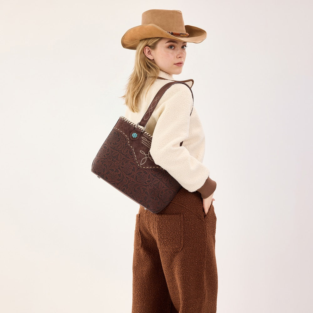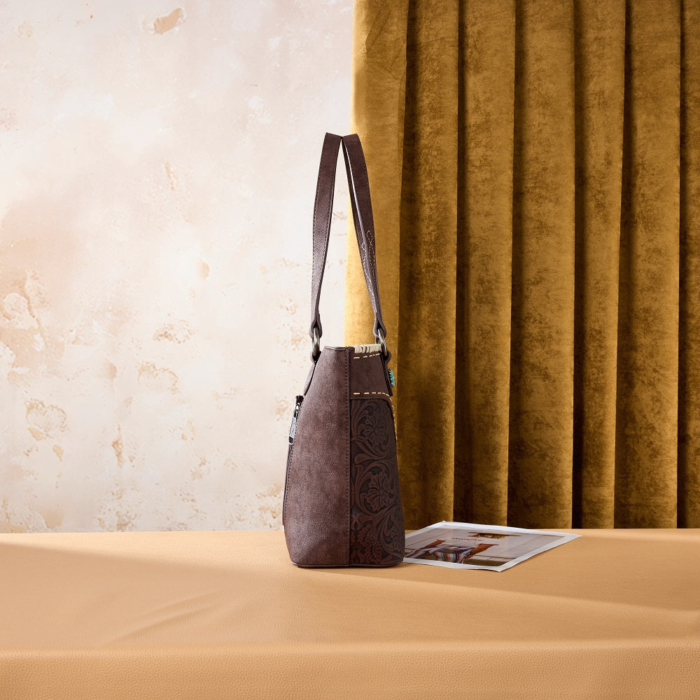 MW1375G-8317CF Montana West Tooled Floral Concealed Carry Tote Bag - Coffee