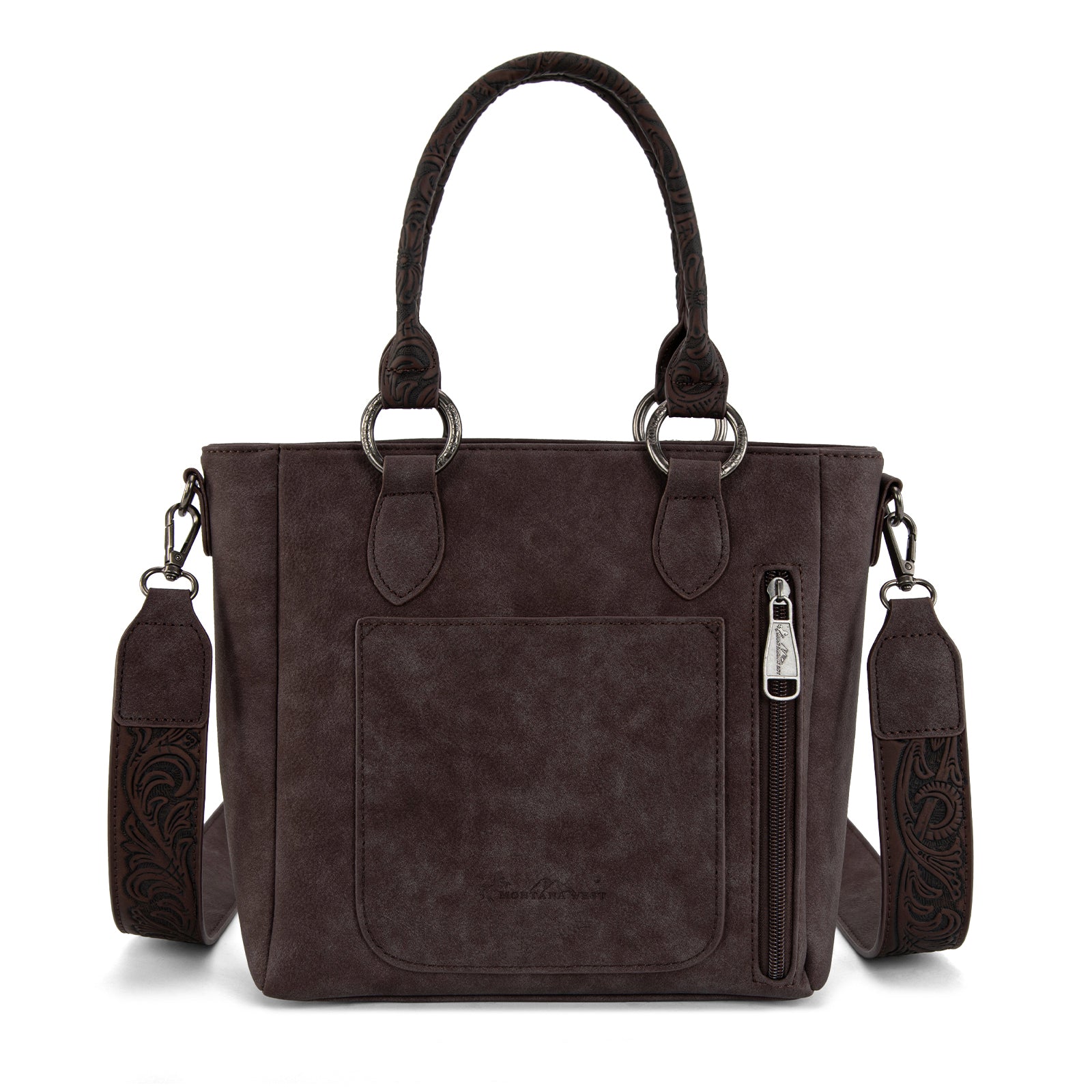• Detachable floral tooled crossbody included (46")
