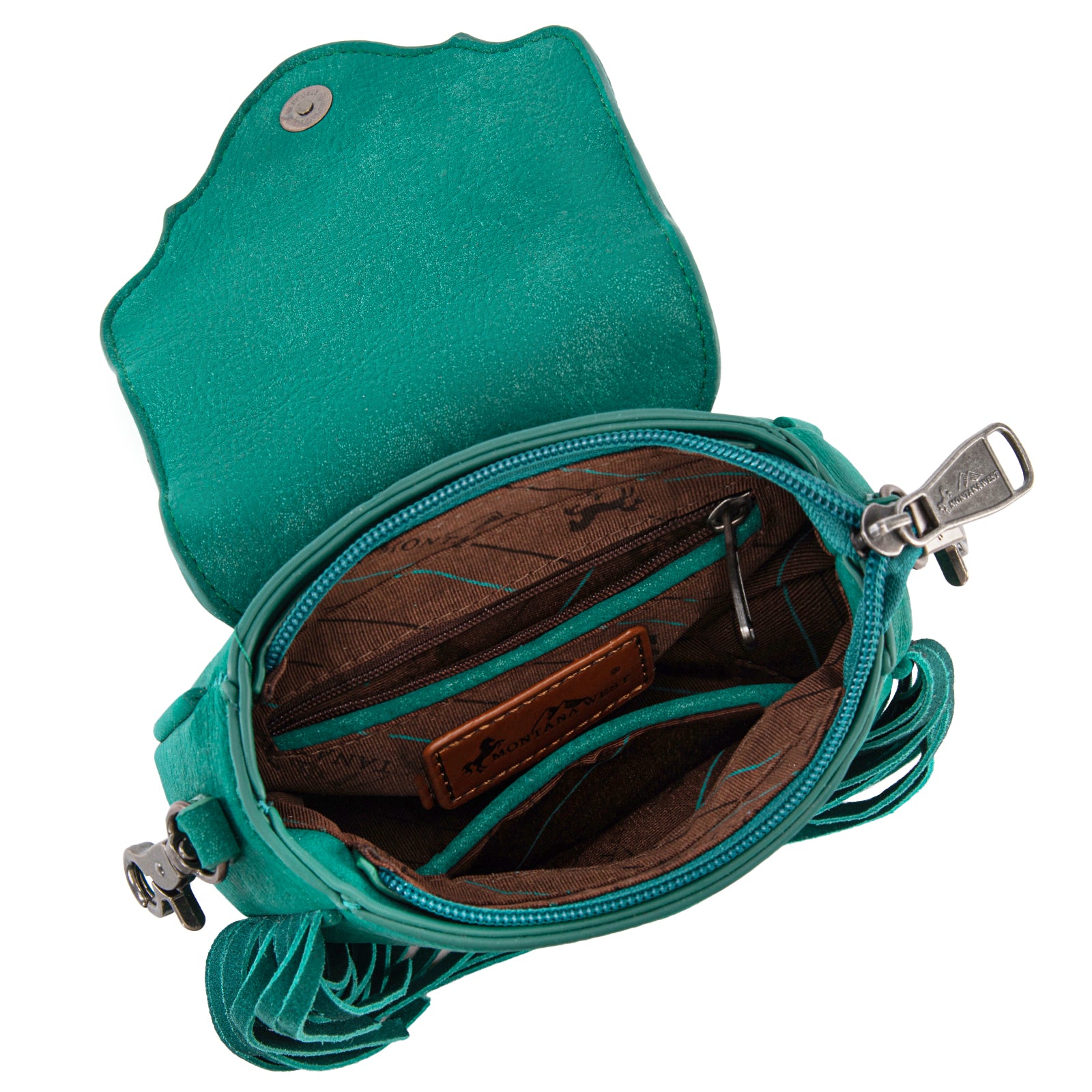MW1366-8360TQ Montana West Embossed Fringe Mini Crossbody -Turquoise