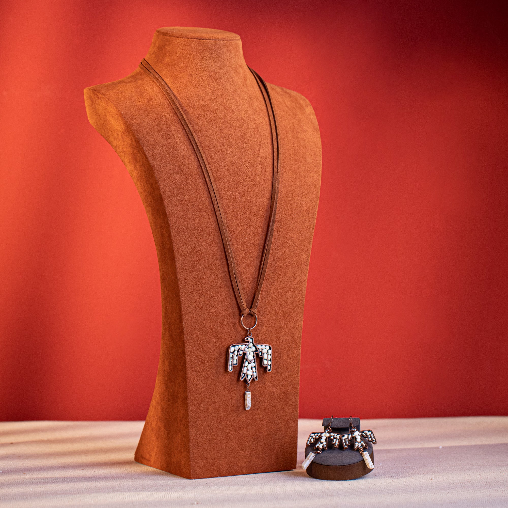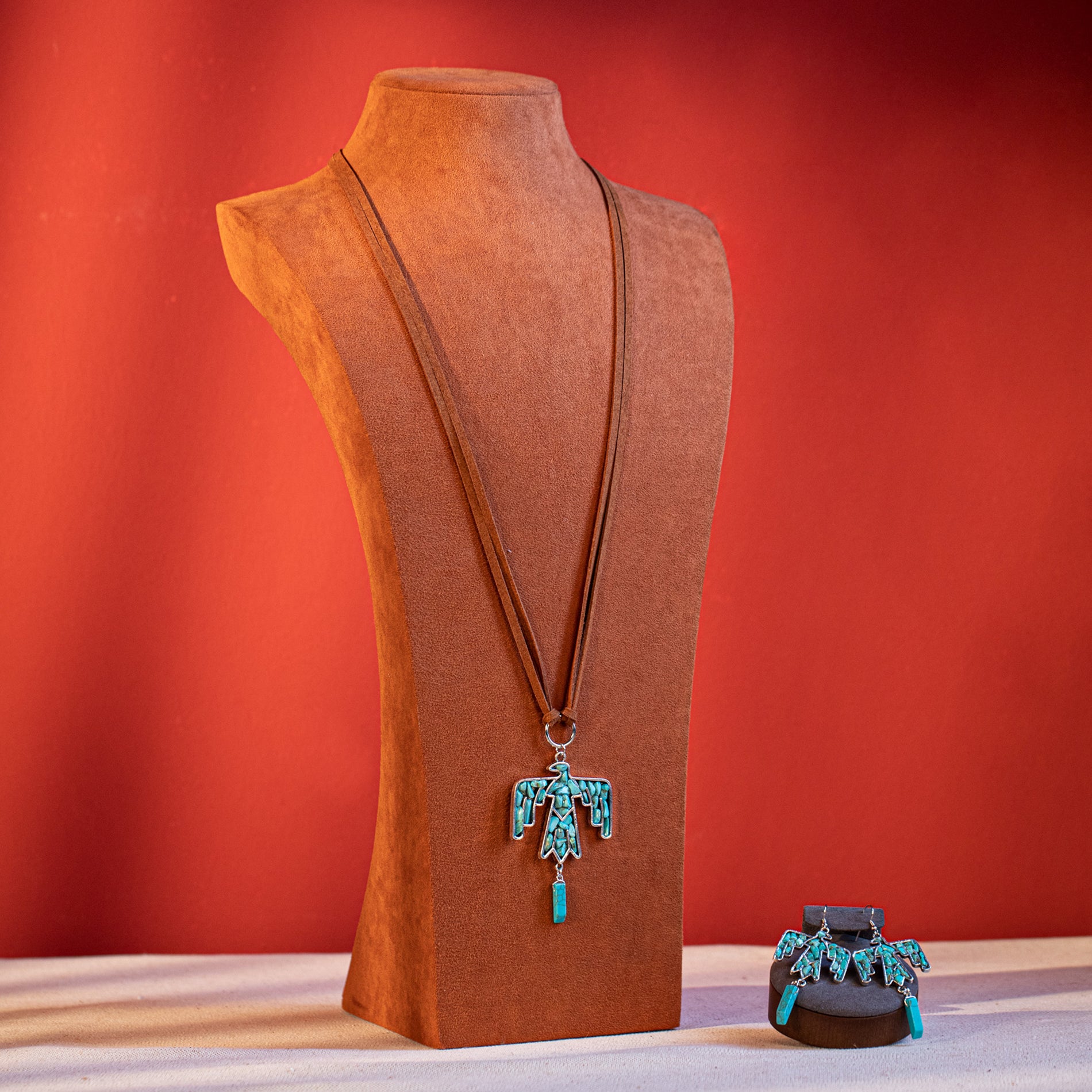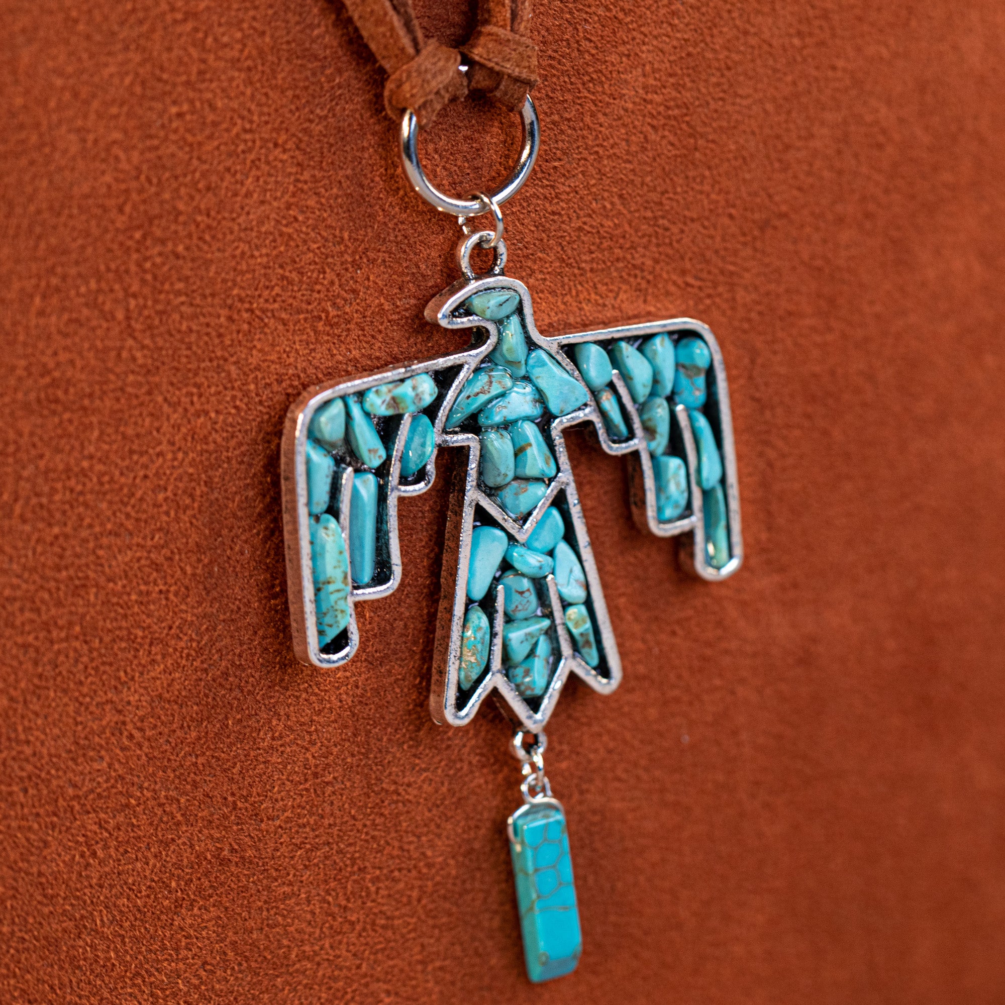 WNS-1043 Wrangler Jewelry Sets Thunderbird Pendant Leather Necklace Earrings Set