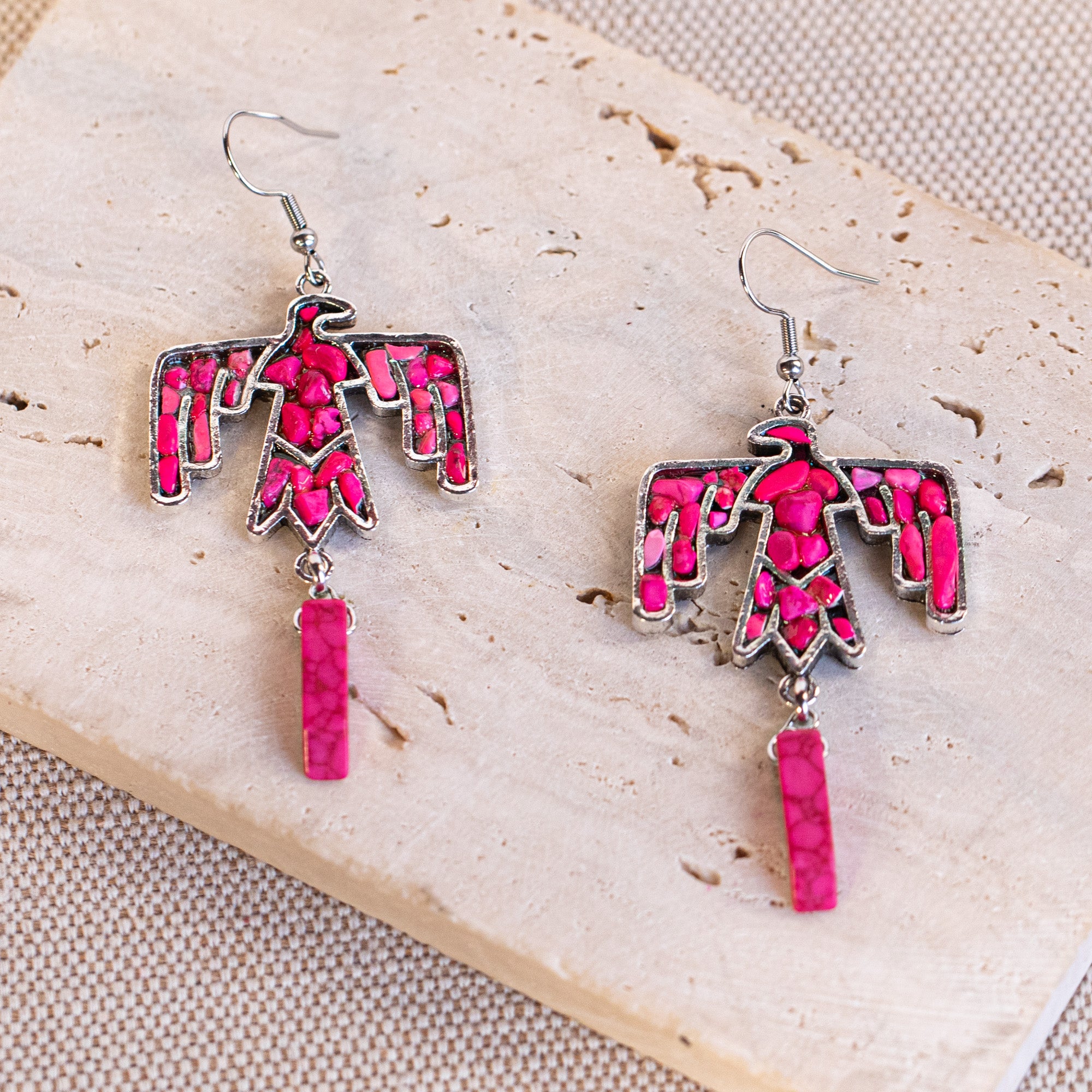 SKU:WNS-1043HPKLeather necklace with color chip inlay thunderbird pendant and Earrings Set