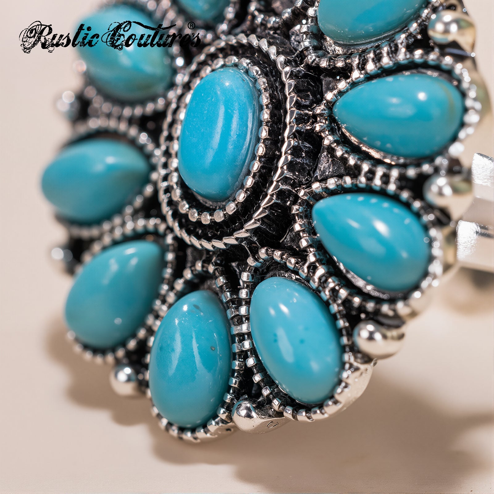 RCR-01-106 Rustic Couture's Bohemian Silver/Bronze Cuff Ring - Turquoise