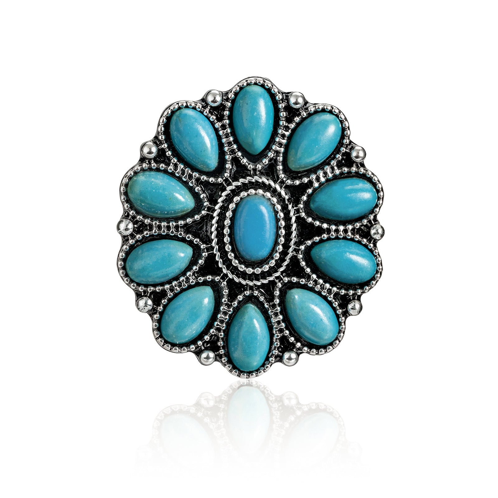 SKU:RCR-01-106TQVintage Silver, Synthetic Turquoise Stone Cuff Ring