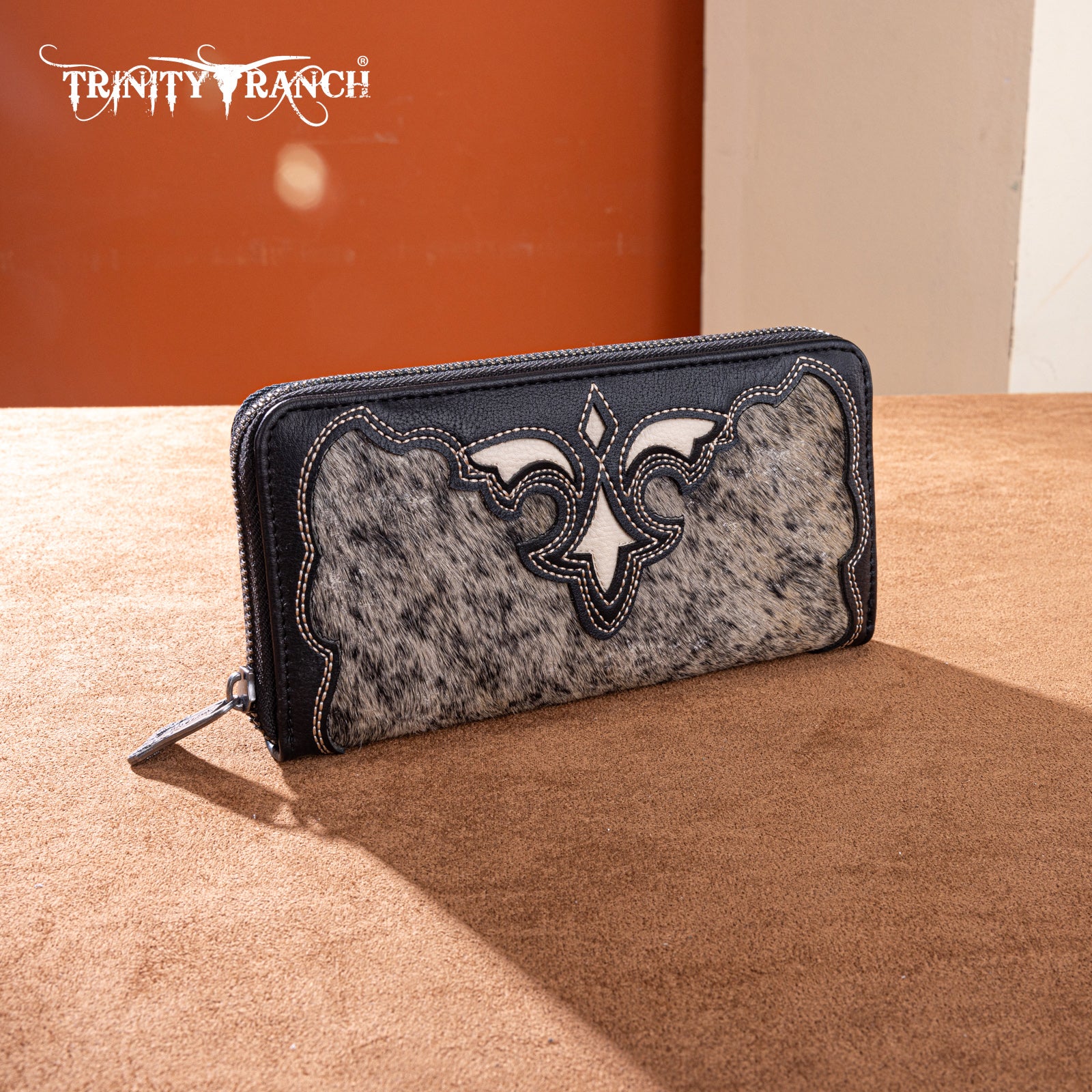 TR202-W2001BK Trinity Ranch Hair-On Cowhide RFID Protected Collection Wallet - Black