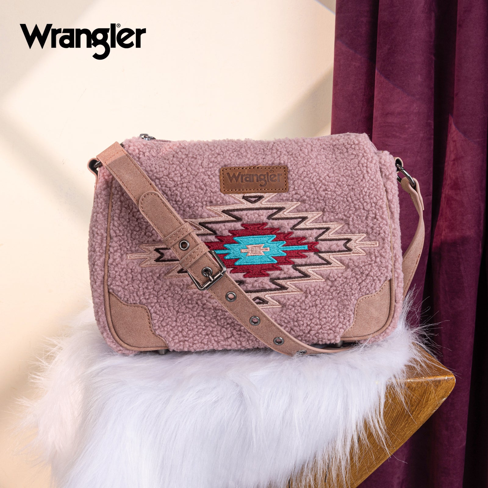 WG263-2022 Wrangler Sherpa Aztec Sherpa Hobo/Shoulder Bag - Dark Pink