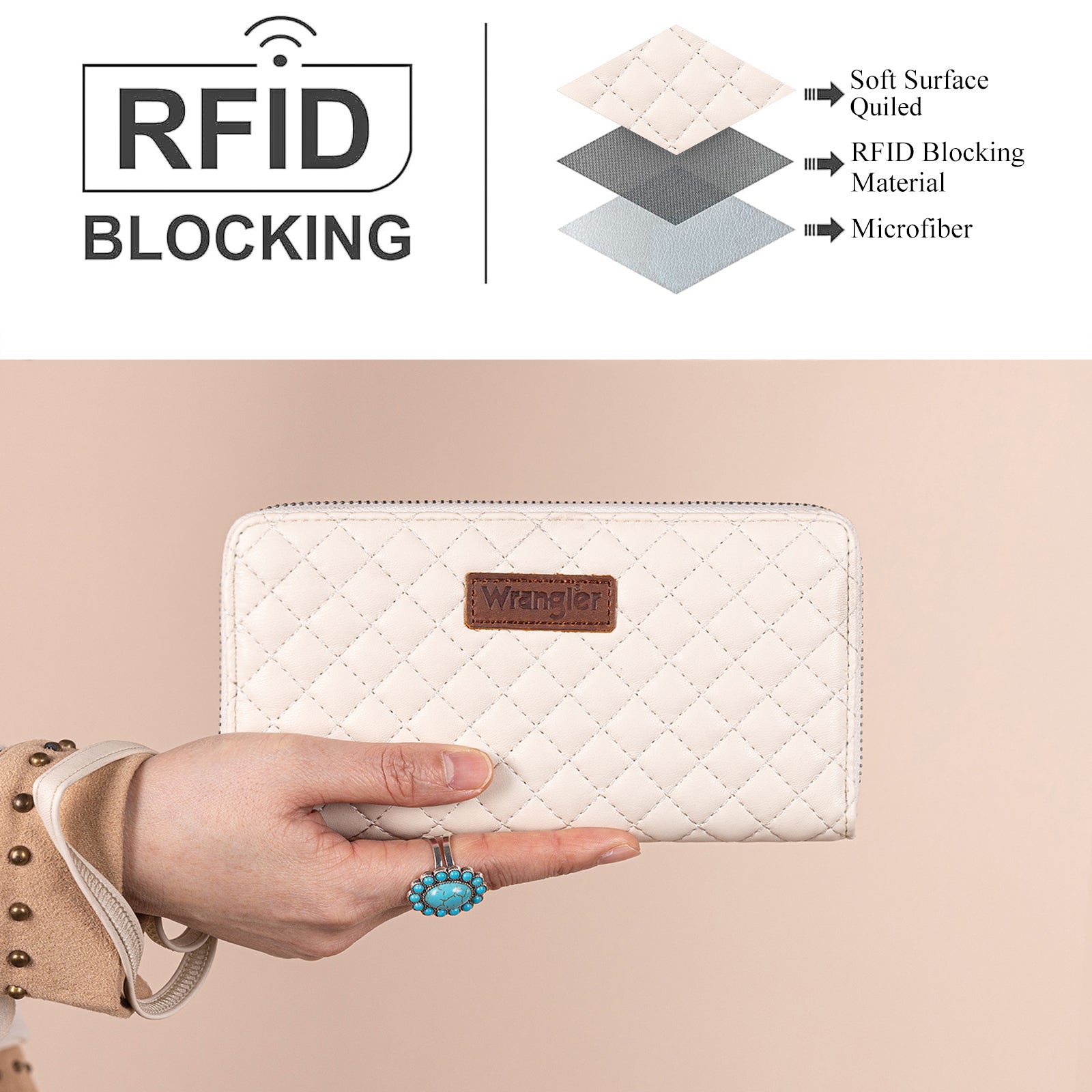 WG214-W064 Wrangler Quilted Design RFID Wallet /Wristlet - Beige