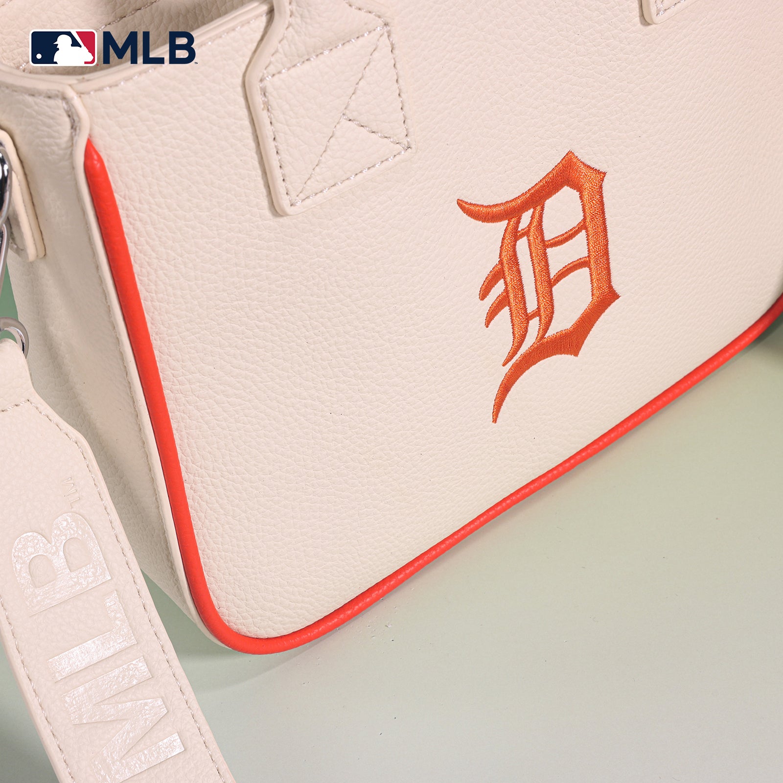 • Detachable/adjustable MLB logo print canvas crossbody strap included