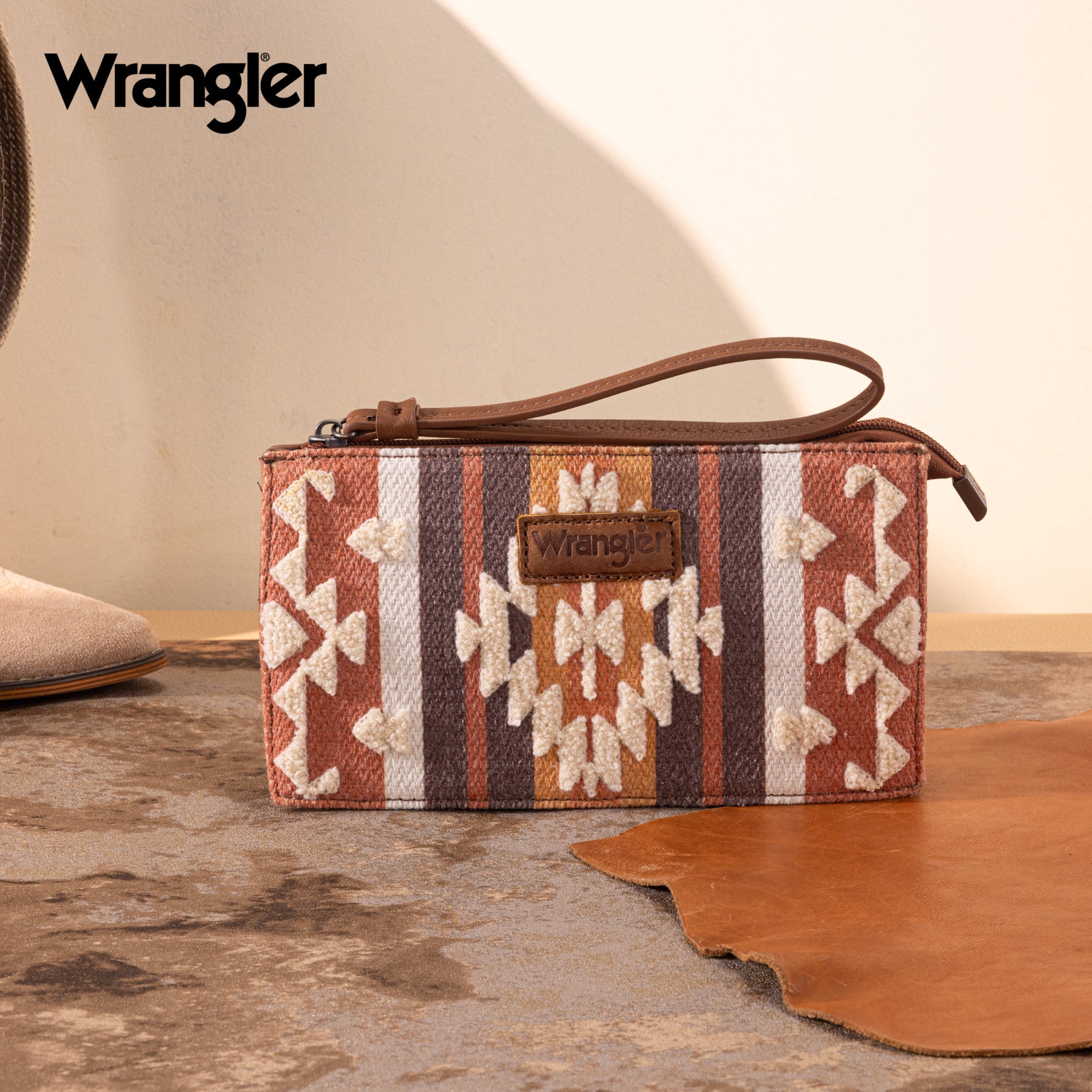 WG313-181 Wrangler Sherpa Aztec Canvas Clutch - Brown