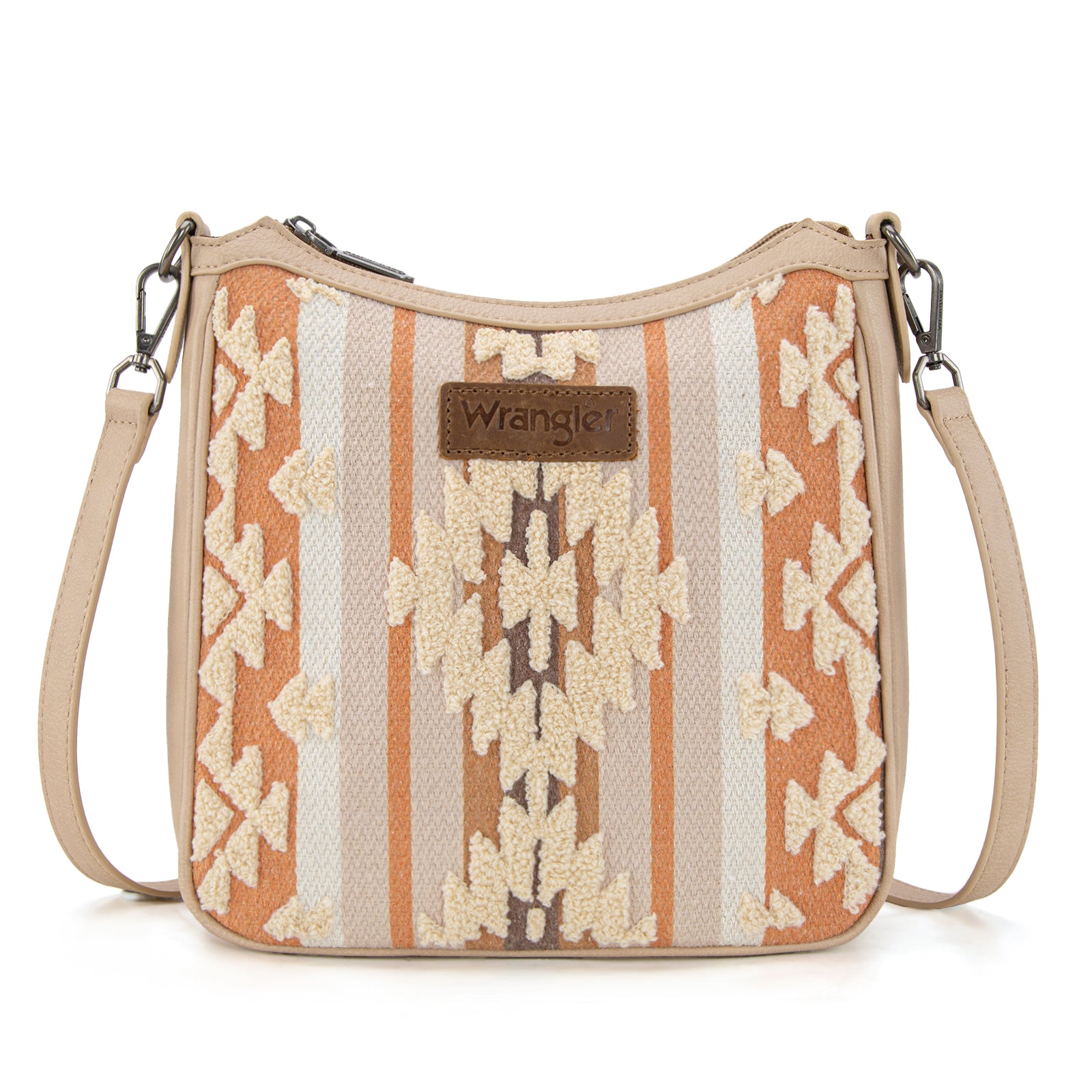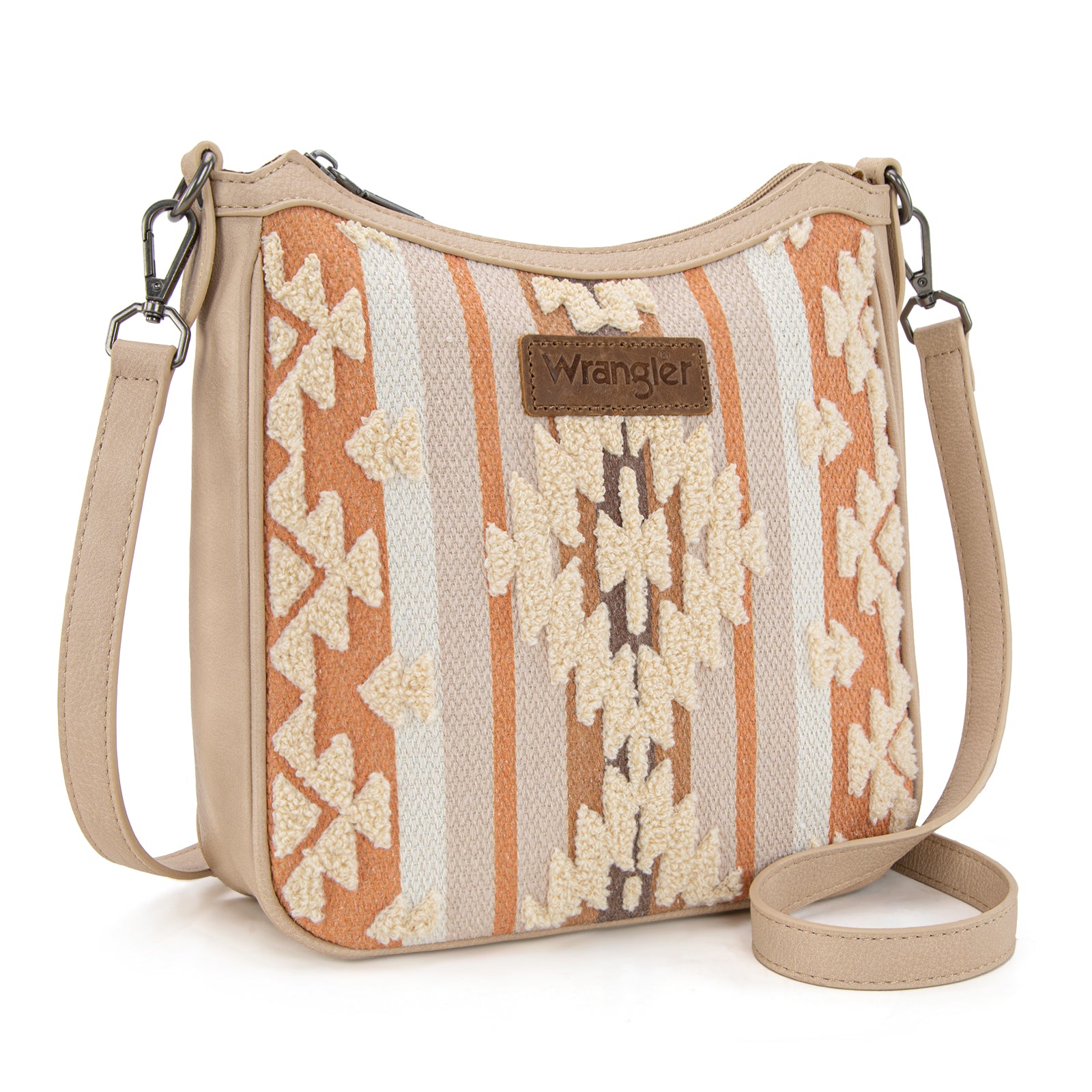WG313-2003 Wrangler Sherpa Aztec Canvas Crossbody - Tan