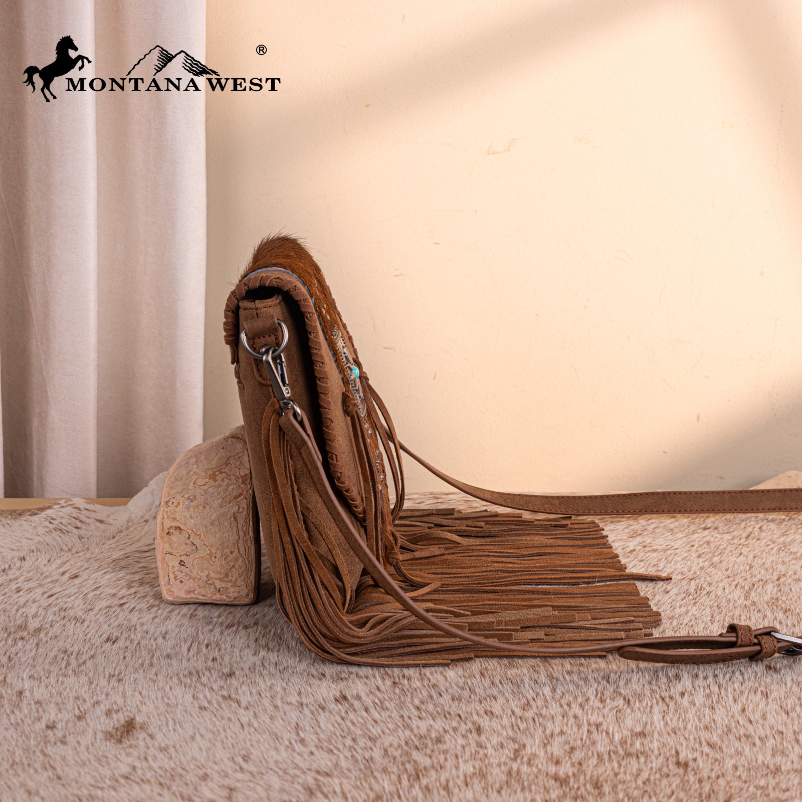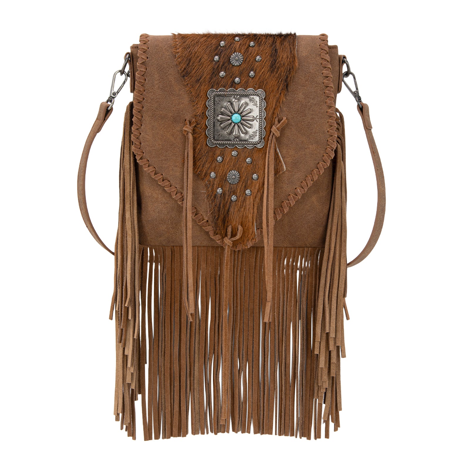 TR201-8360 Trinity Ranch Fringe Hair-On Cowhide Crossbody - Brown