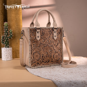 TR192-8368 Trinity Ranch Floral Tooled Collection Tote/Crossbody- Tan