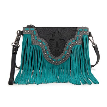 Trinity Ranch line by Montana West, this partial genuine leather clutch/crossbody has: