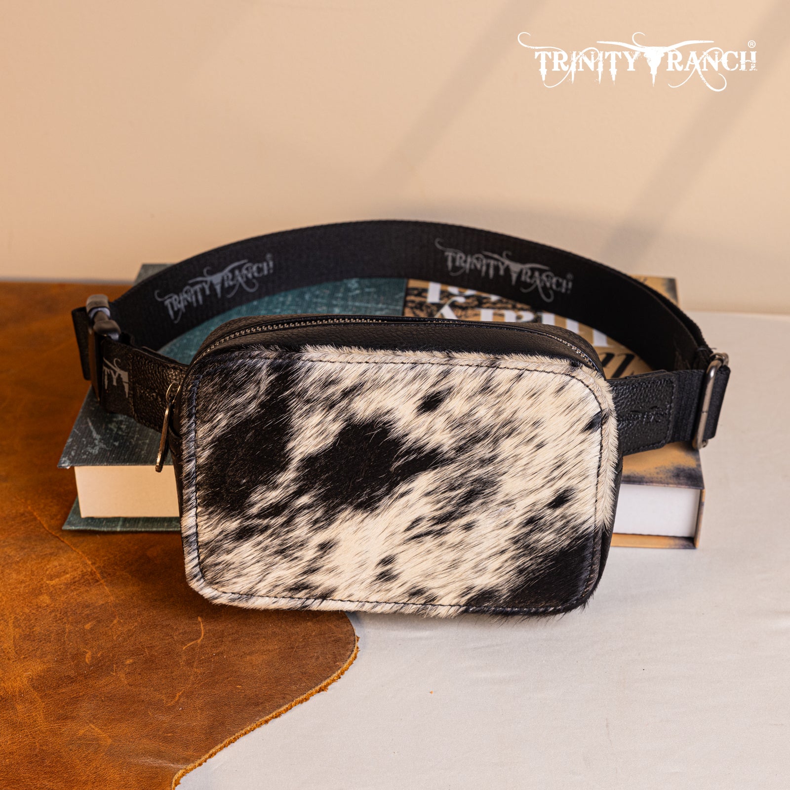 TR184-194 Trinity Ranch Genuine Hair-On Cowhide Belt Bag - Black