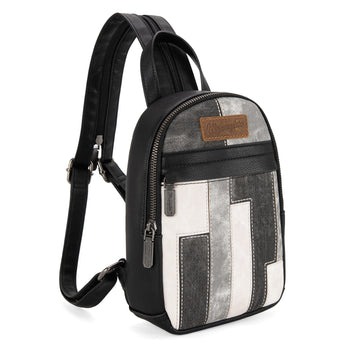 WG164-210 Wrangler Denim Patchwork Mini Backpack with Detachable Coin Pouch - Black