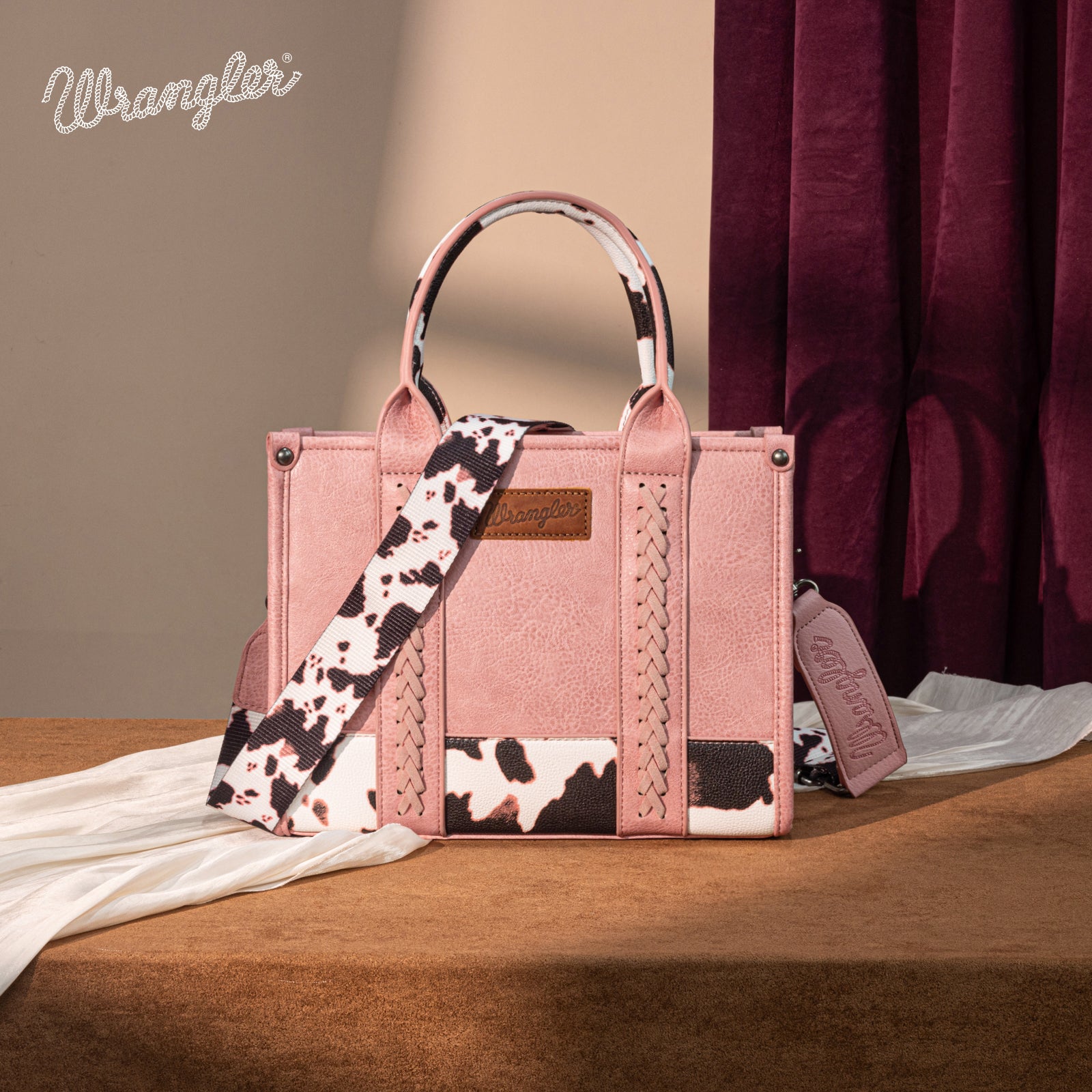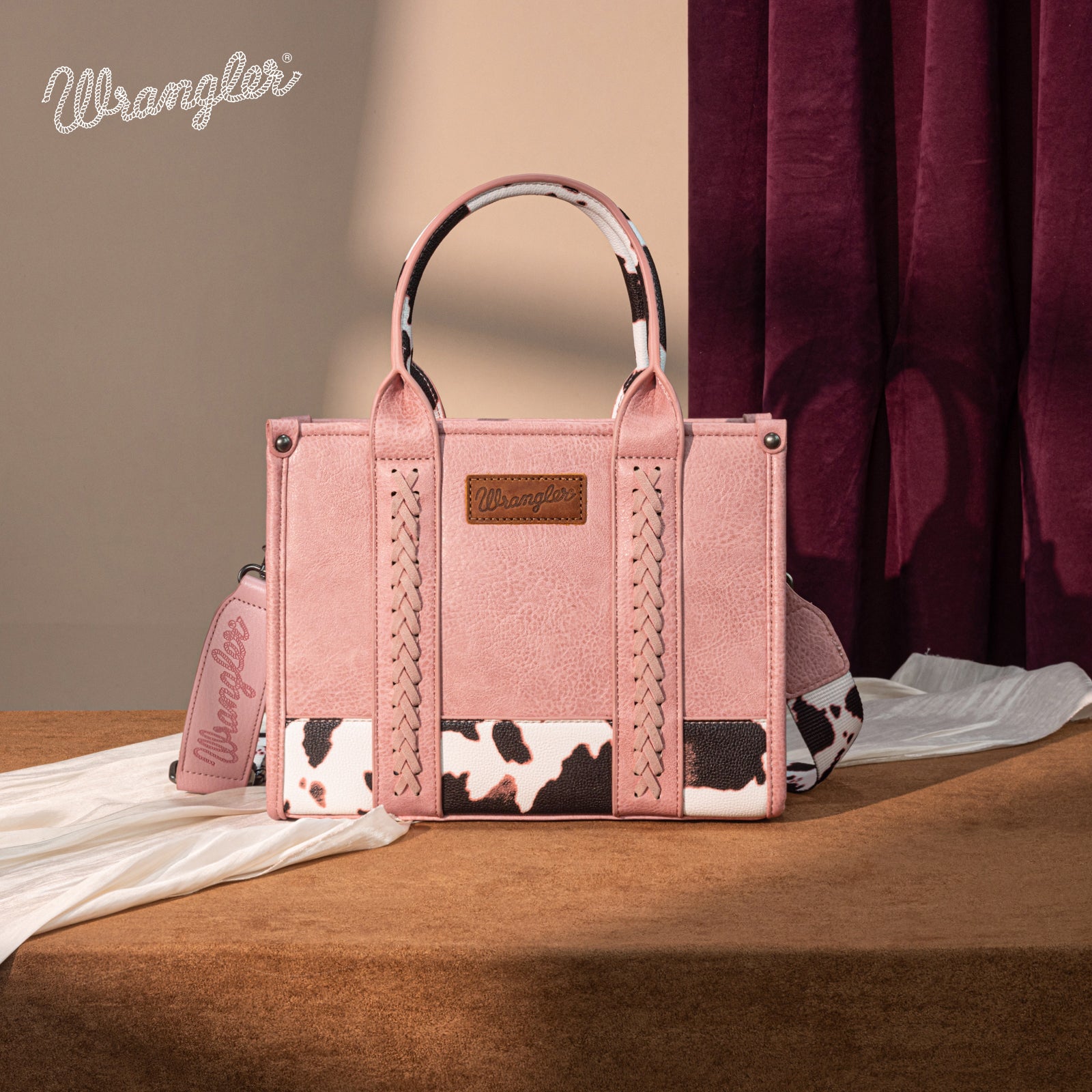 WG102-8120S Wrangler Cow Print Concealed Carry Tote/Crossbody - Hot Pink