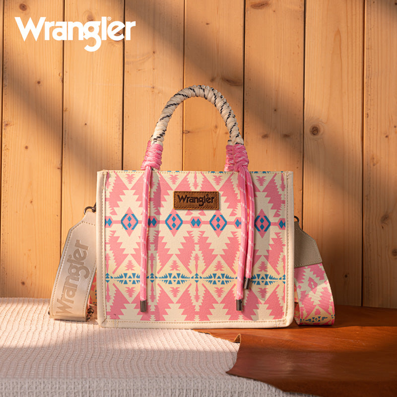 WG206-8122S Wrangler Aztec Print Rope Tote/Crossbody - Light Pink