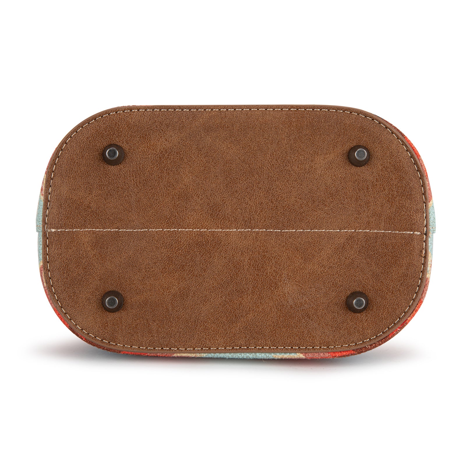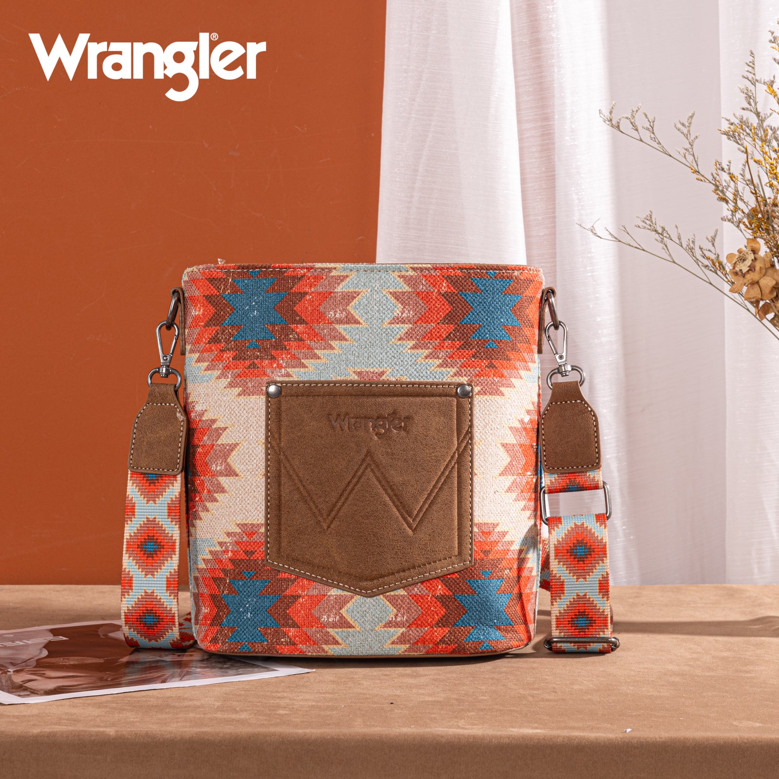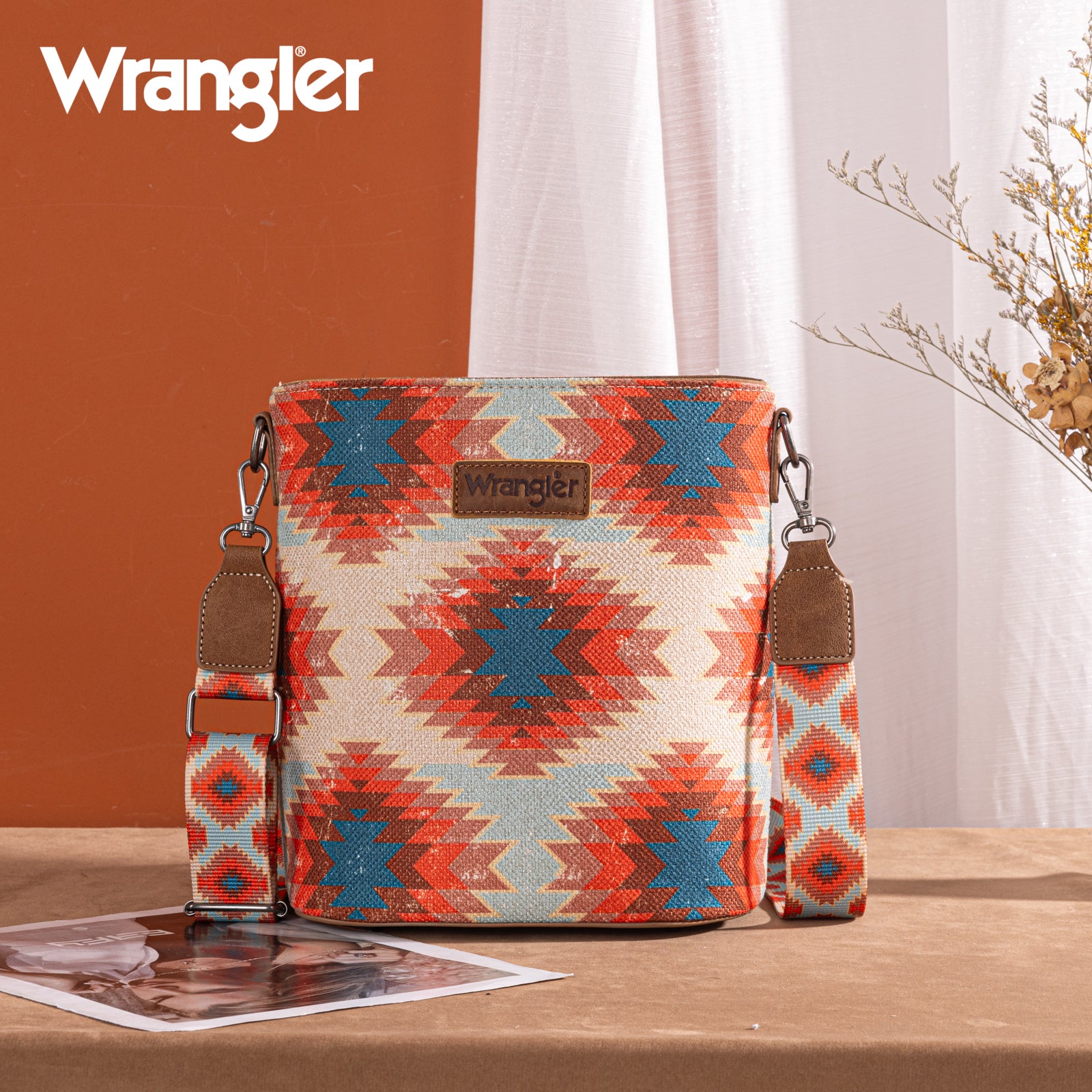 WG221-8360 Wrangler Aztec Distressed Print Dual Sided Print Crossbody-Burgundy