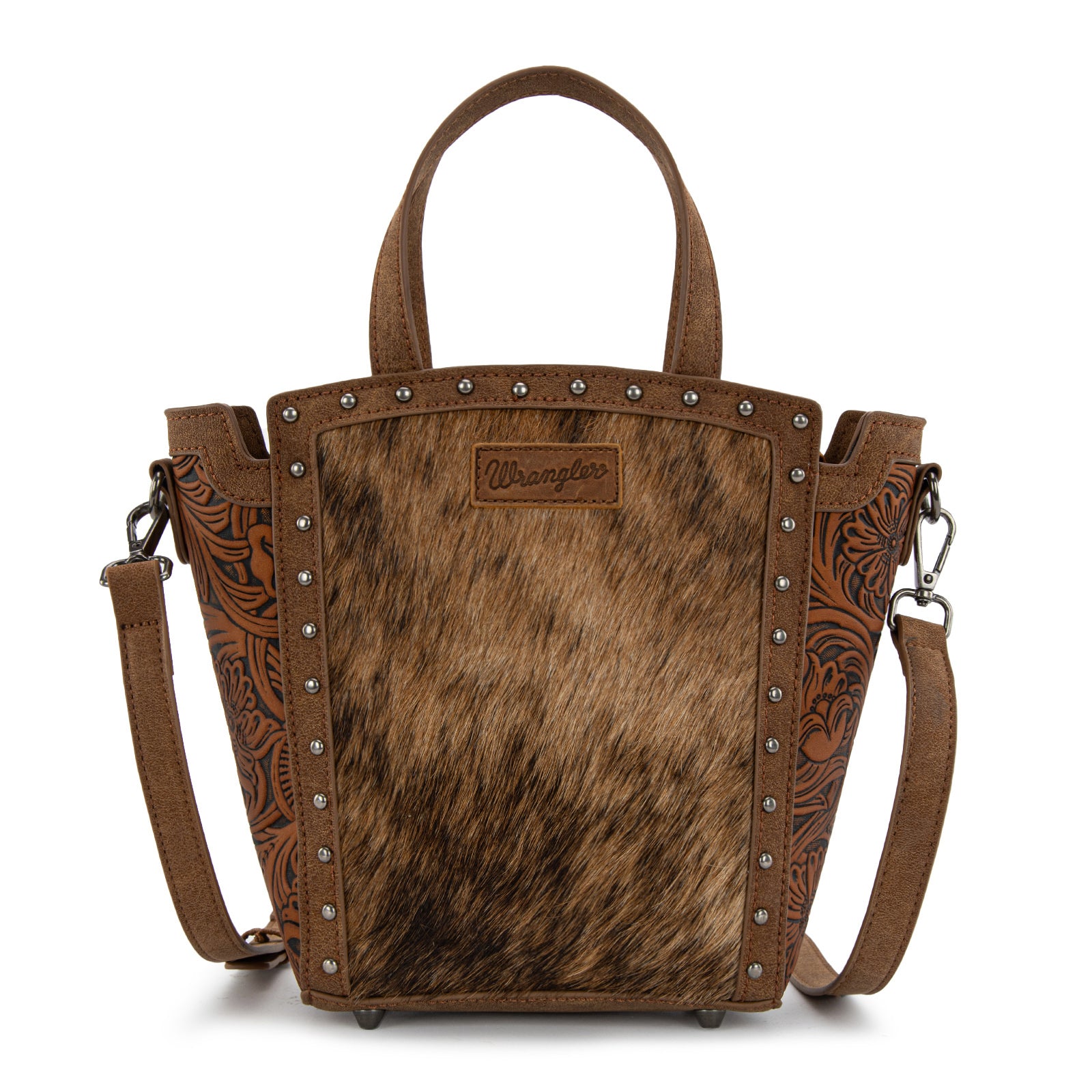 WG252-8014 Wrangler Genuine Hair-On Cowhide Tote/Crossbody - Brown