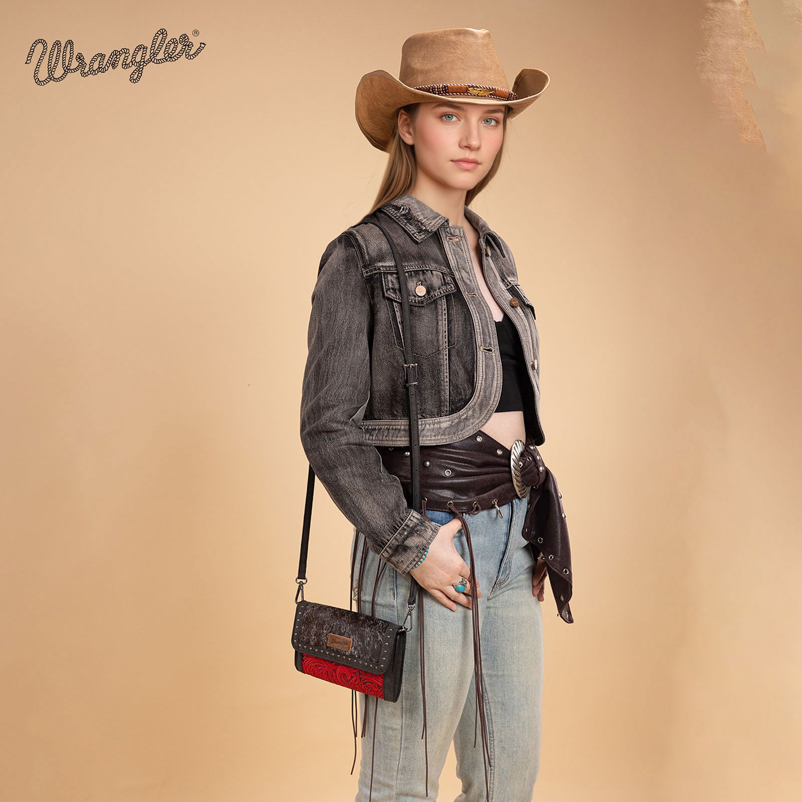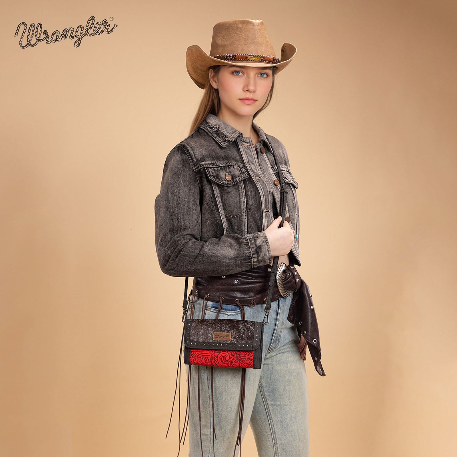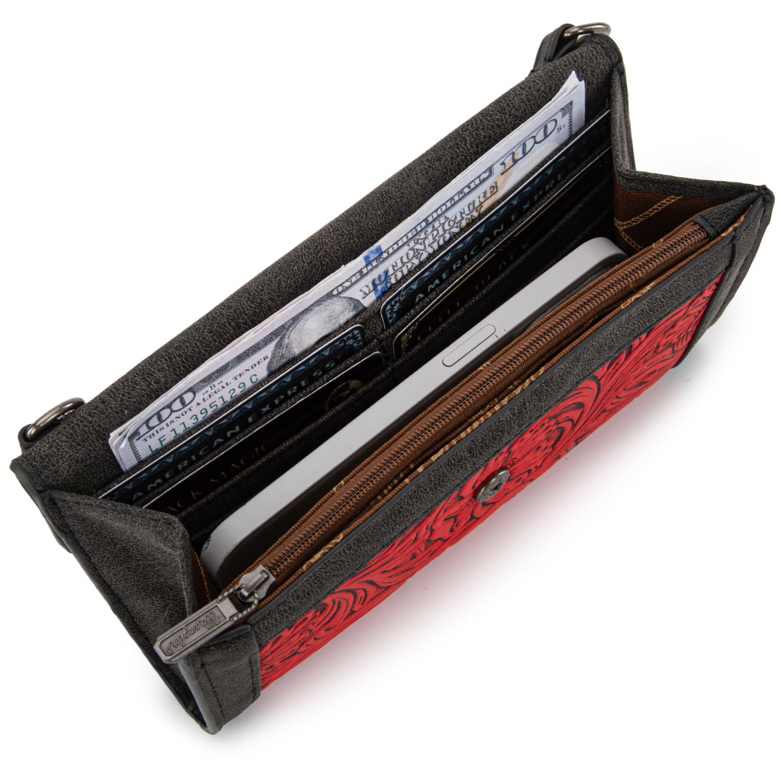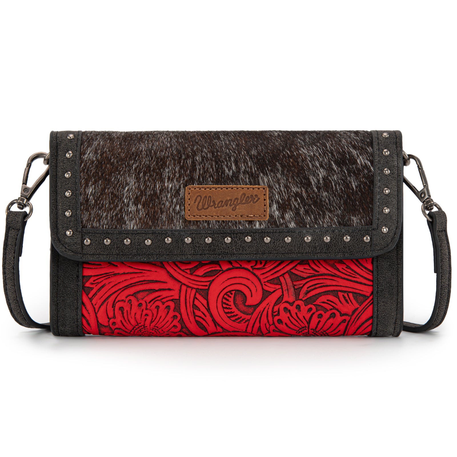 WG252-C012 Wrangler Genuine Cowhide Wallet/Wristlet/Crossbody Bag - Red