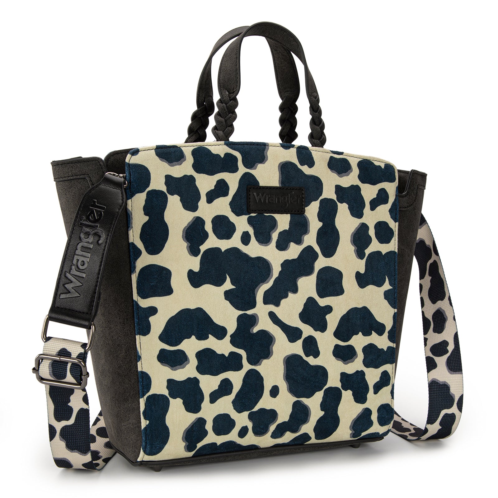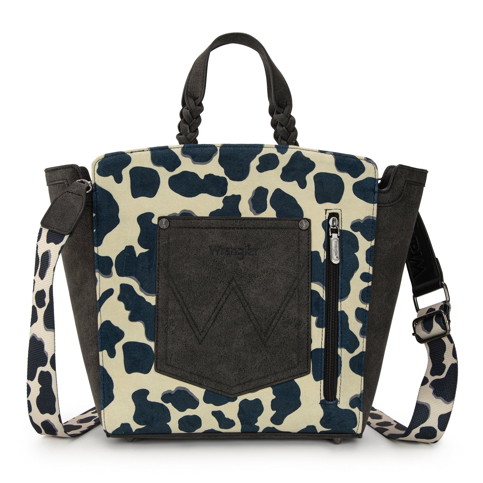 WG264-8014BK Wrangler Cow Print Concealed Carry Tote/Crossbody - Black